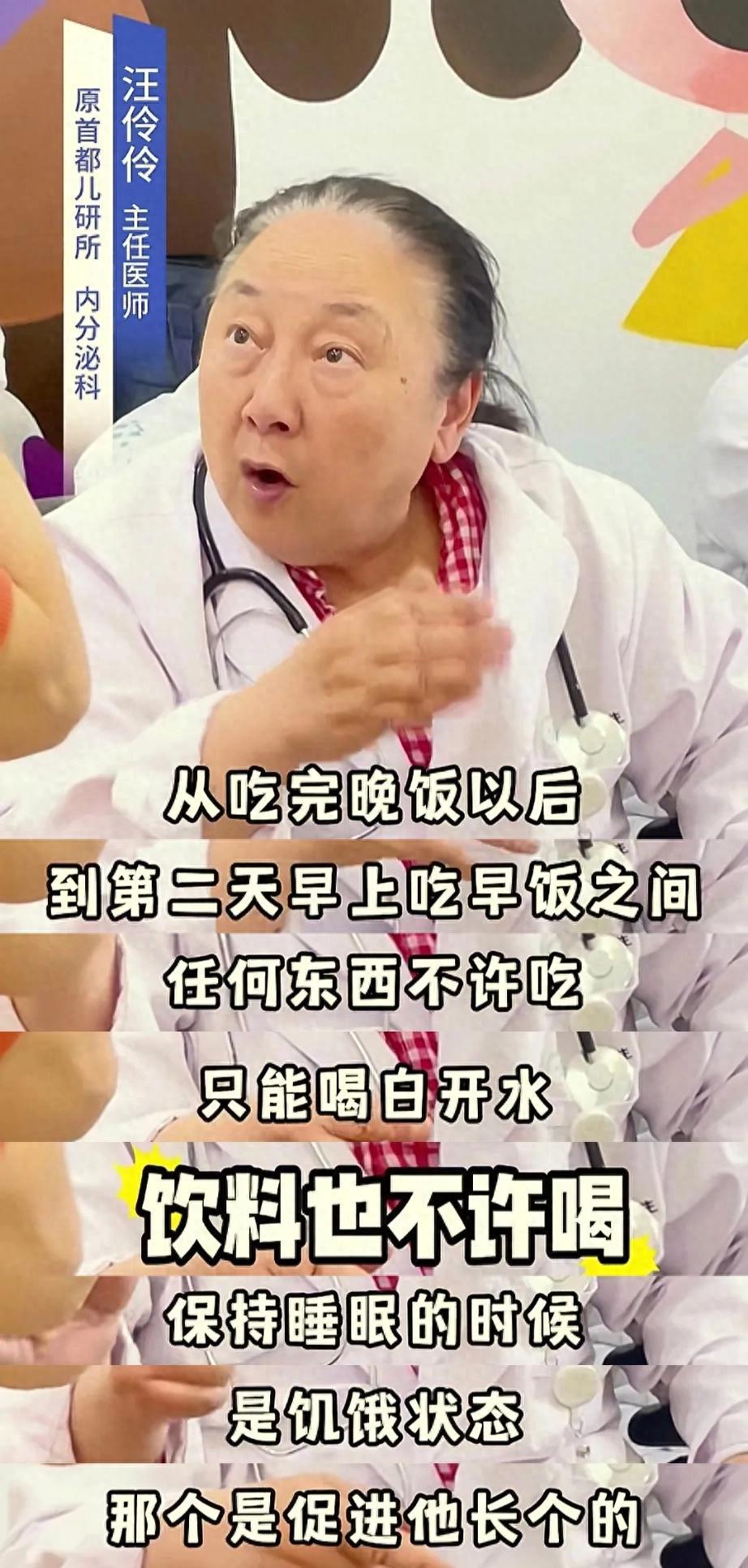 比如很多家長覺得晚上孩子要喫好要喫飽,營養充足了才能夠長高。但其實汪醫生就提到,孩子在晚上不要喫太飽,甚至是睡前兩小時不要給孩子喫東西,不要喝奶,因爲晚上在飢餓的狀態下能夠刺激孩子的生長激素更好地分泌。