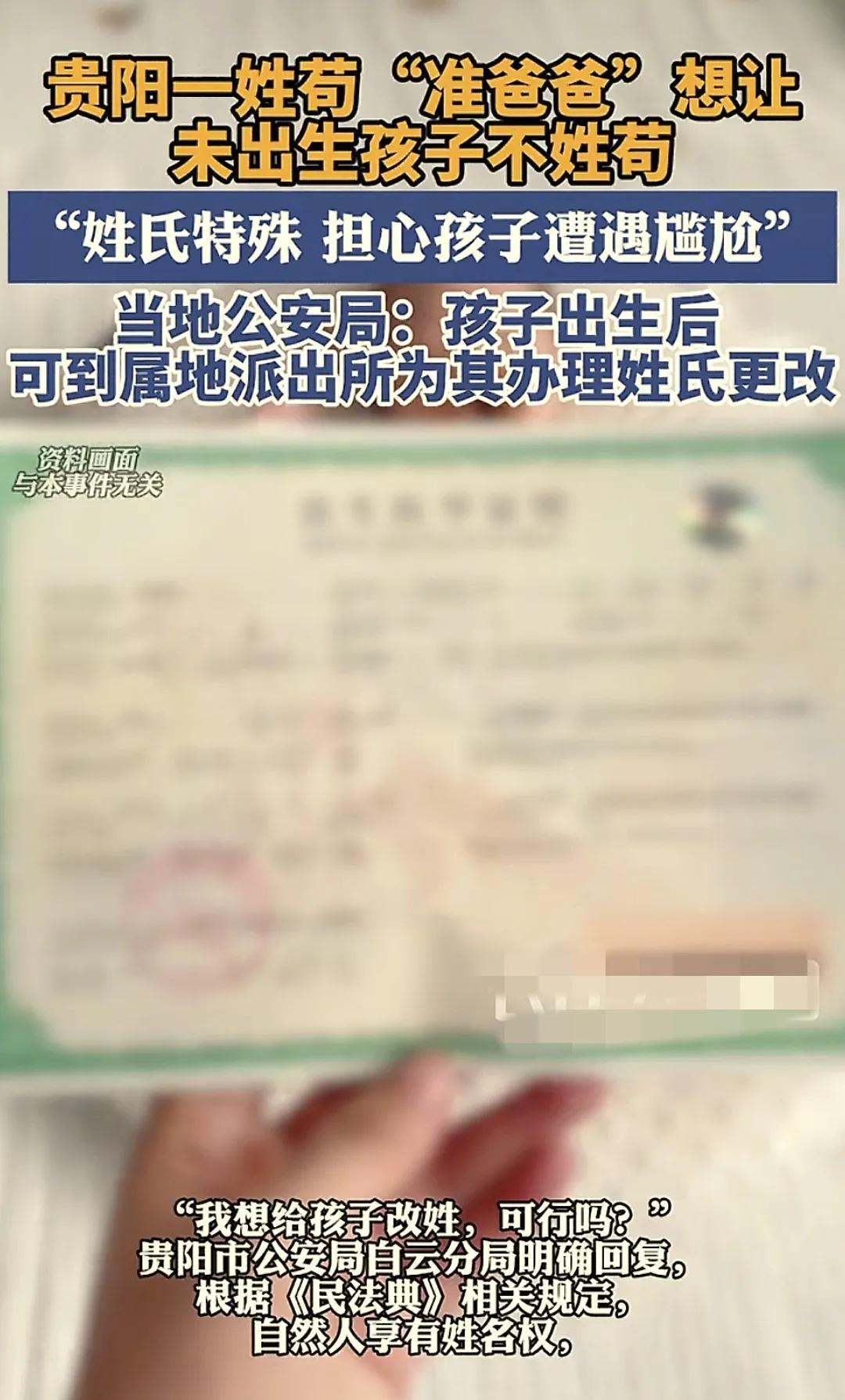 爸爸姓“苟”,媽媽姓“操”擔心孩子尷尬?公安局的回應亮了