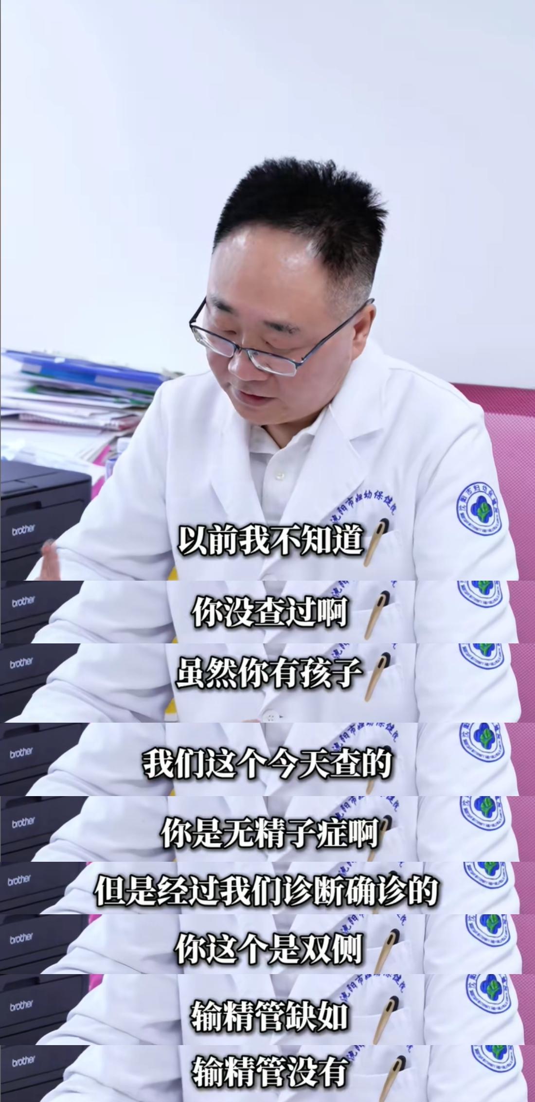 這個妻子也覺得很詫異說她老公有孩子啊,爲什麼有孩子又說沒有精子呢?然後醫生就說這個是雙側沒有輸精管,沒有輸精管一般都不是後天造成的,大部分都是先天性就沒有輸精管了。