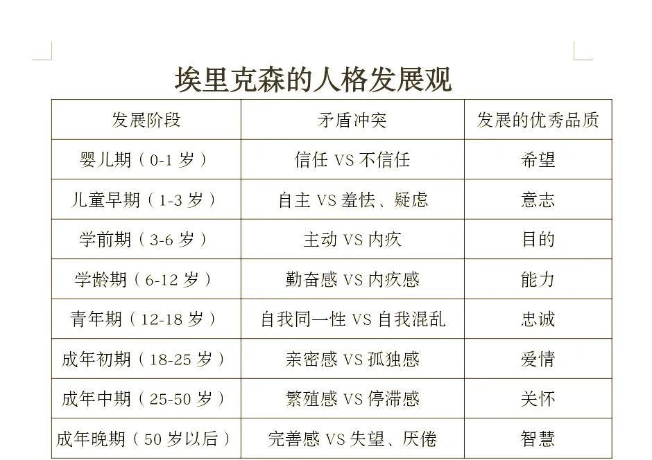 著名的精神分析理論家埃裏克森就把孩子不同的階段進行分類,0~1歲的孩子最主要要實現的目標是滿足生理上的需求,發展信任感。
