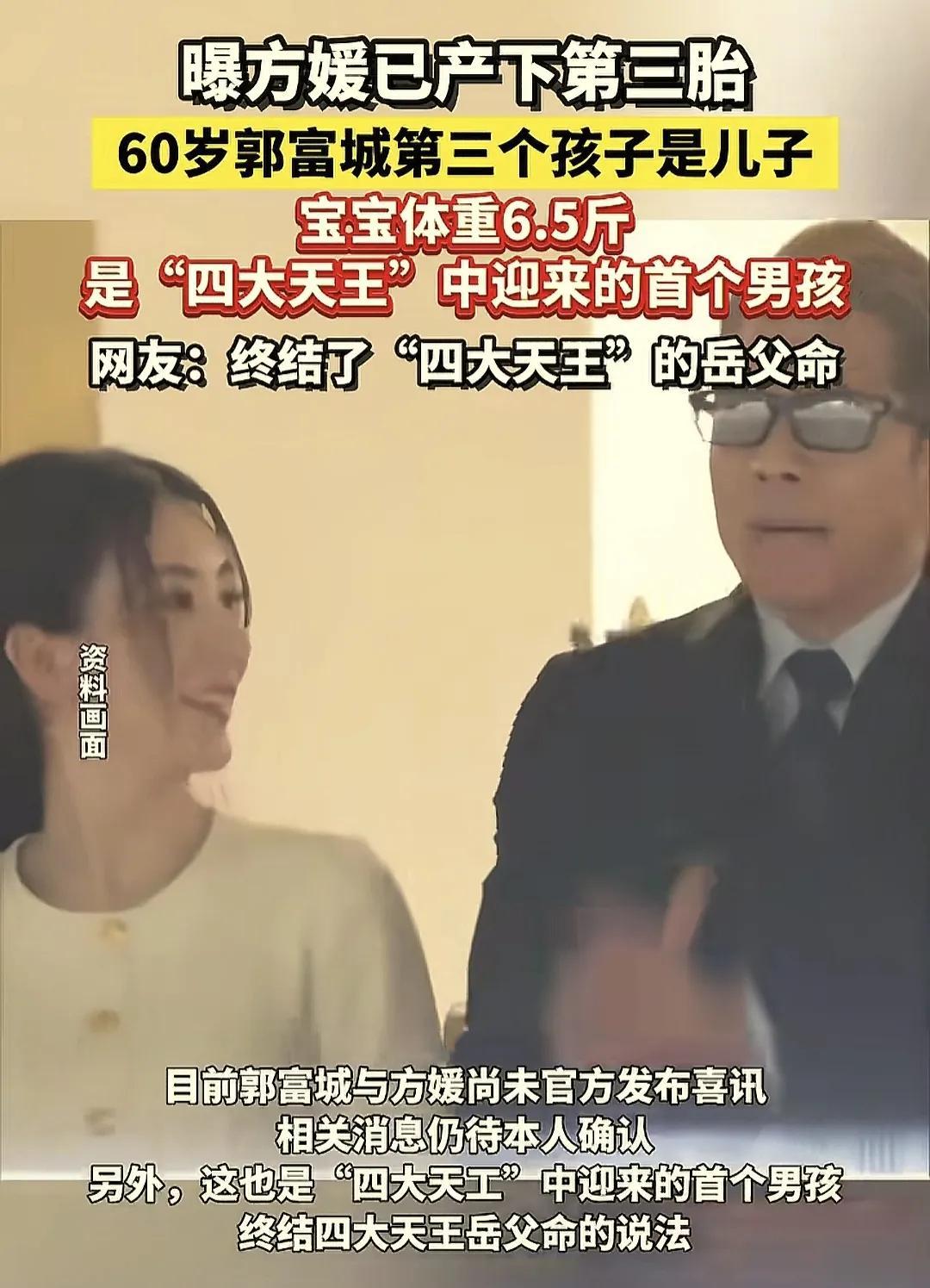 四大天王岳父命被終結:郭富城妻子方媛產下第3胎,6.5斤男孩