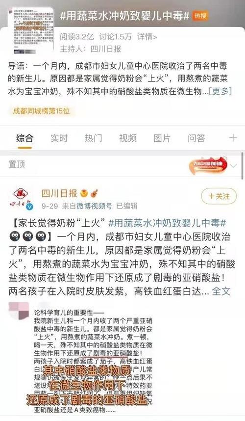 四川還有家長覺得孩子太小,喝奶粉怕上火,於是就煮青菜水給孩子衝奶粉,覺得這樣子不上火,早上煮的青菜水用一天,結果孩子出現了亞硝酸鹽中毒,口脣都是青紫的,送到醫院搶救。