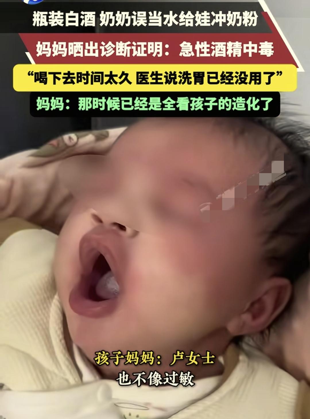 奶奶“白酒衝奶”給滿月孩子喝,大半天才發現,醫生:洗胃沒用了