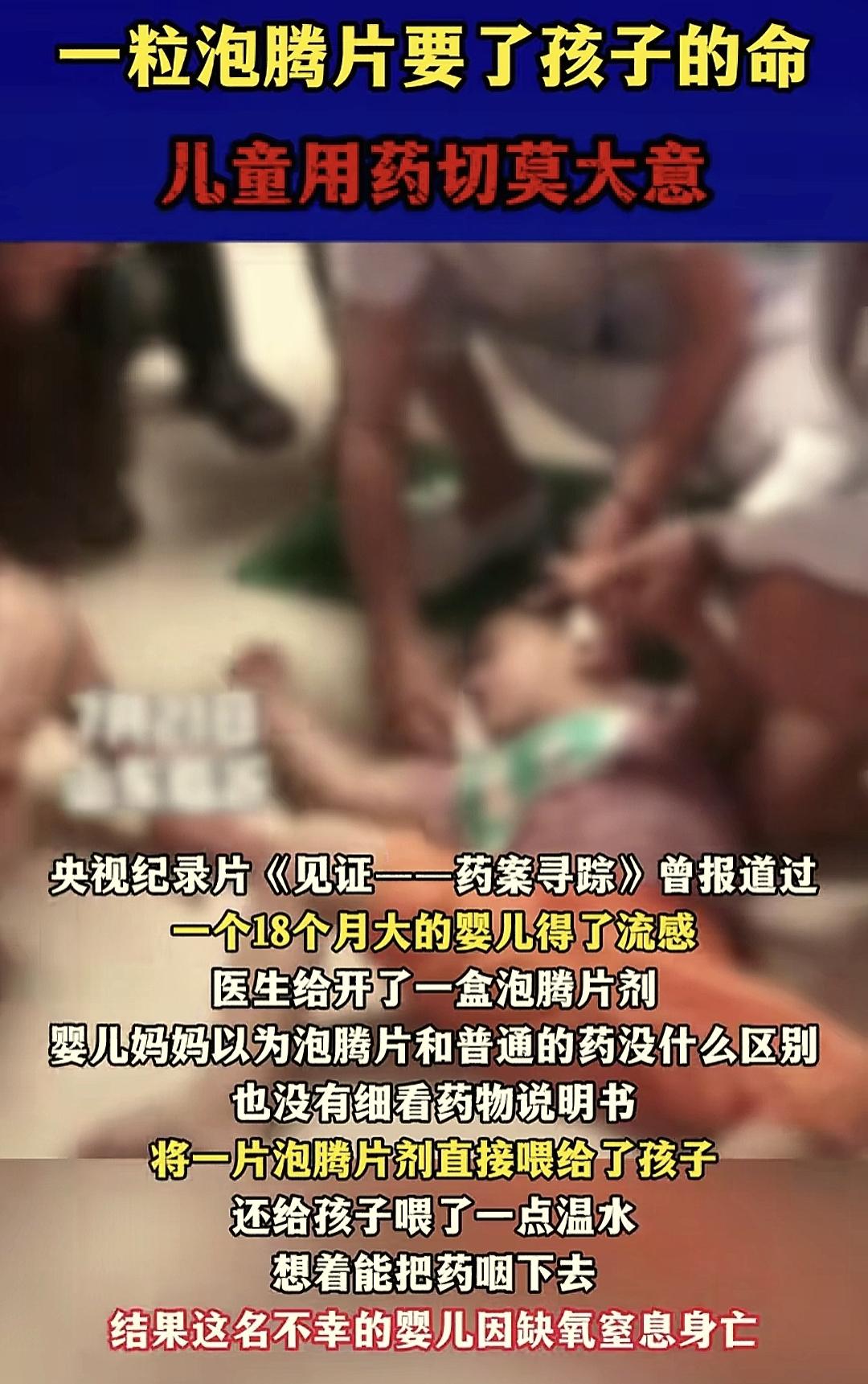 媽媽崩潰痛哭,但是再也換不回孩子的生命,一片小小的泡騰片就要了這個一歲半孩子的命,所以不懂用藥禁忌很可能會害死孩子。