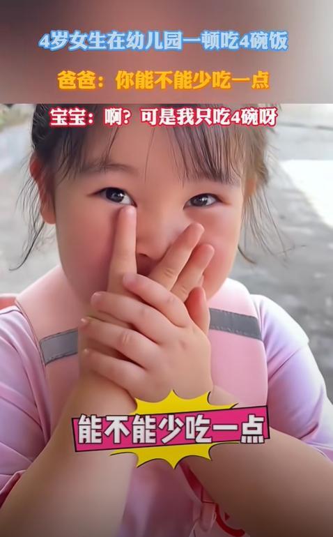 有位寶貝上幼兒園喫飯,一頓要喫四碗飯。