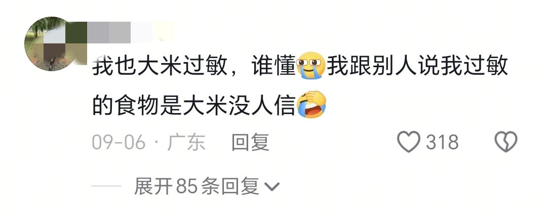 評論區裏很多網友都覺得不可思議,真的還有米飯過敏的,當然也真有米飯過敏的。