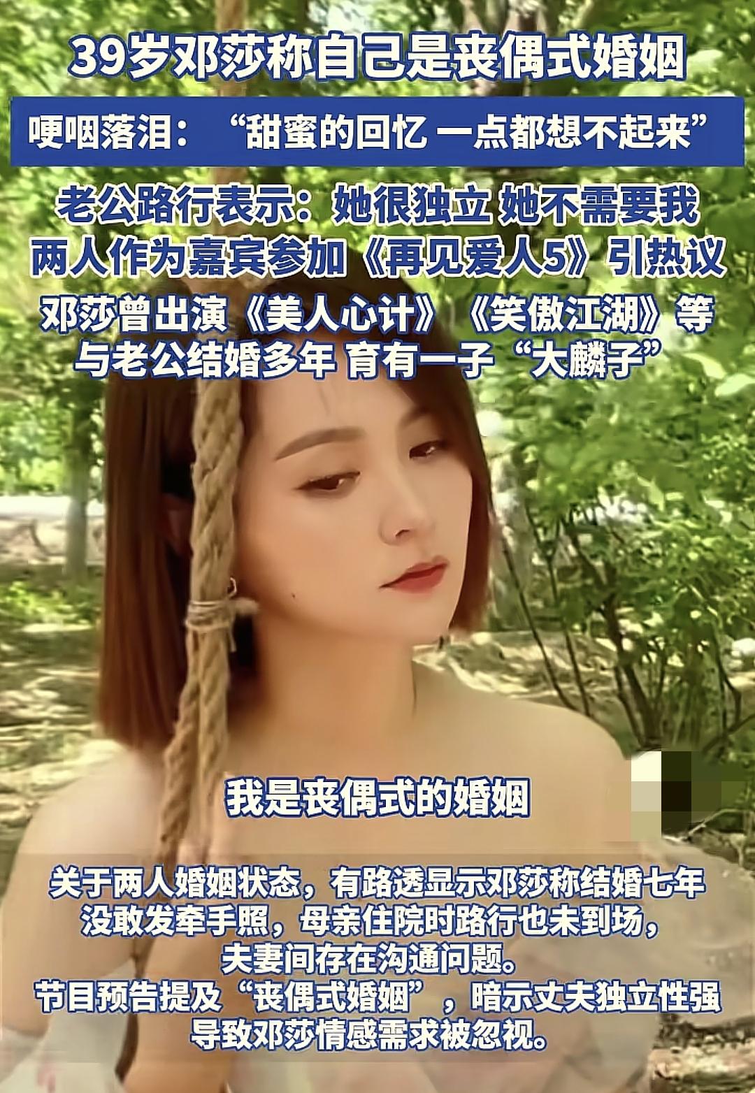 而鄧莎卻提到自己這些年可以說是喪偶式育兒,自己在懷孕的時候產檢,老公路行沒有一次陪同過,而且孩子出生之後也要做一些兒童保健的檢查,老公也從來沒有陪自己去過,讓自己覺得非常的沮喪和難過。這些年的婚姻生活回憶起來沒有什麼甜蜜的時刻,有的都是各種艱辛。