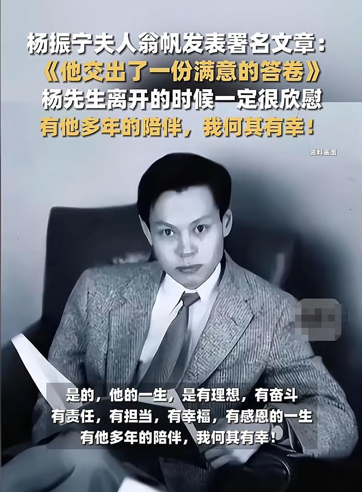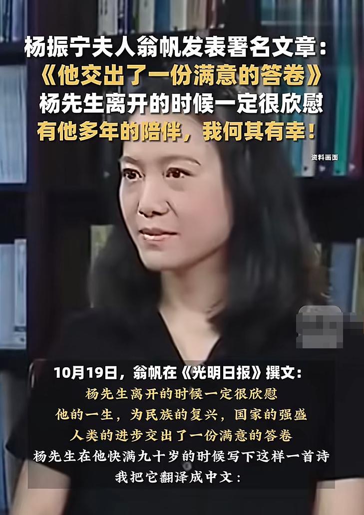 翁帆稱揚振寧離開時很欣慰,21年婚姻自覺幸運!網友:幾時再婚