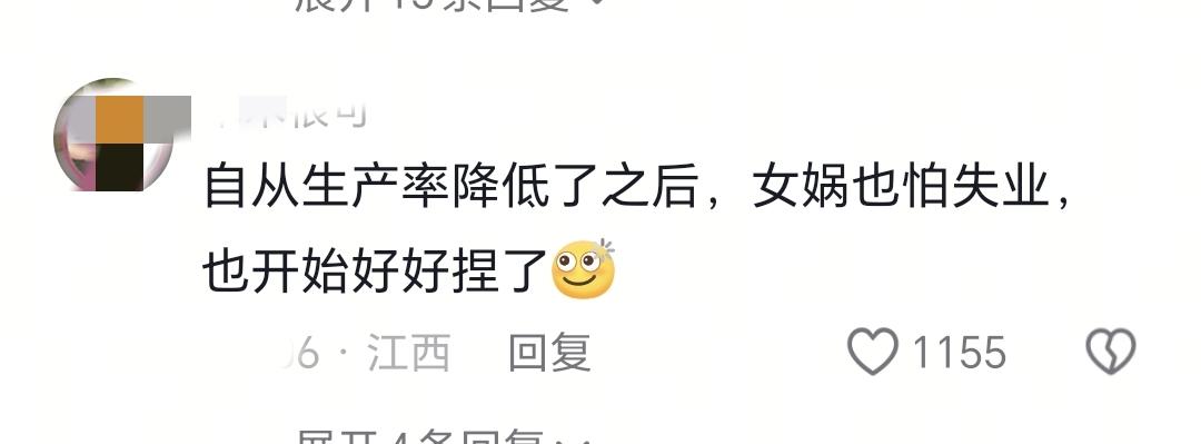 還有網友說:哎呀,看來是生育力下降了,女媧上班也不能糊弄了,得好好地捏出精品來了。