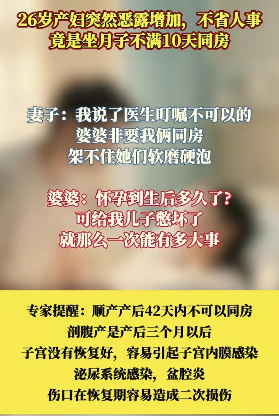婆婆哀求兒媳履行一職責,導致產婦月子大出血昏迷,醫生:禽獸