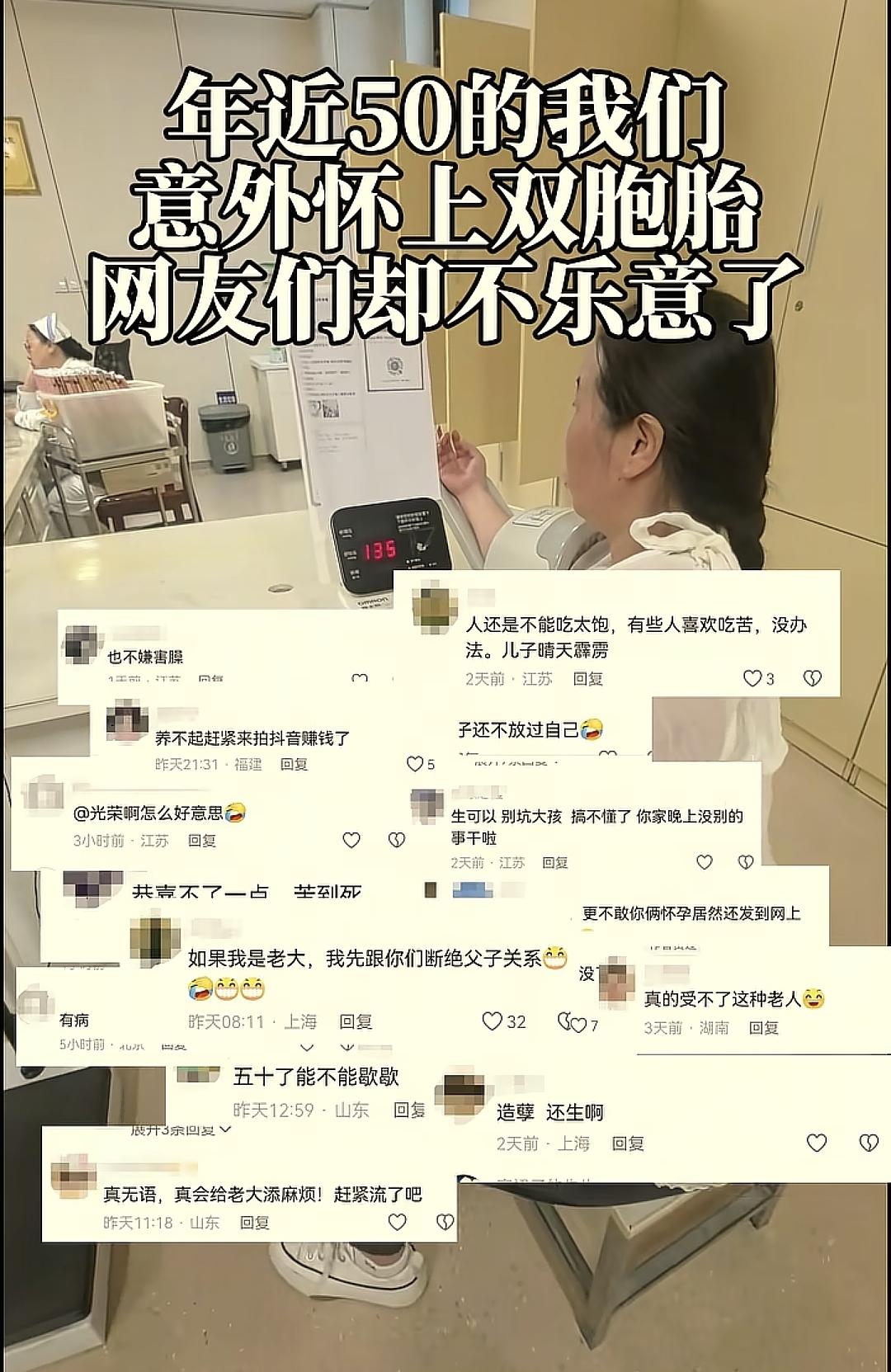 估計這對夫妻發視頻在網上也會考慮到這樣的後果,畢竟像他們45歲,老大已經準備高考,這時候生二胎可能很多人是不理解的,但他們萬萬沒有想到是有這麼多人反對。