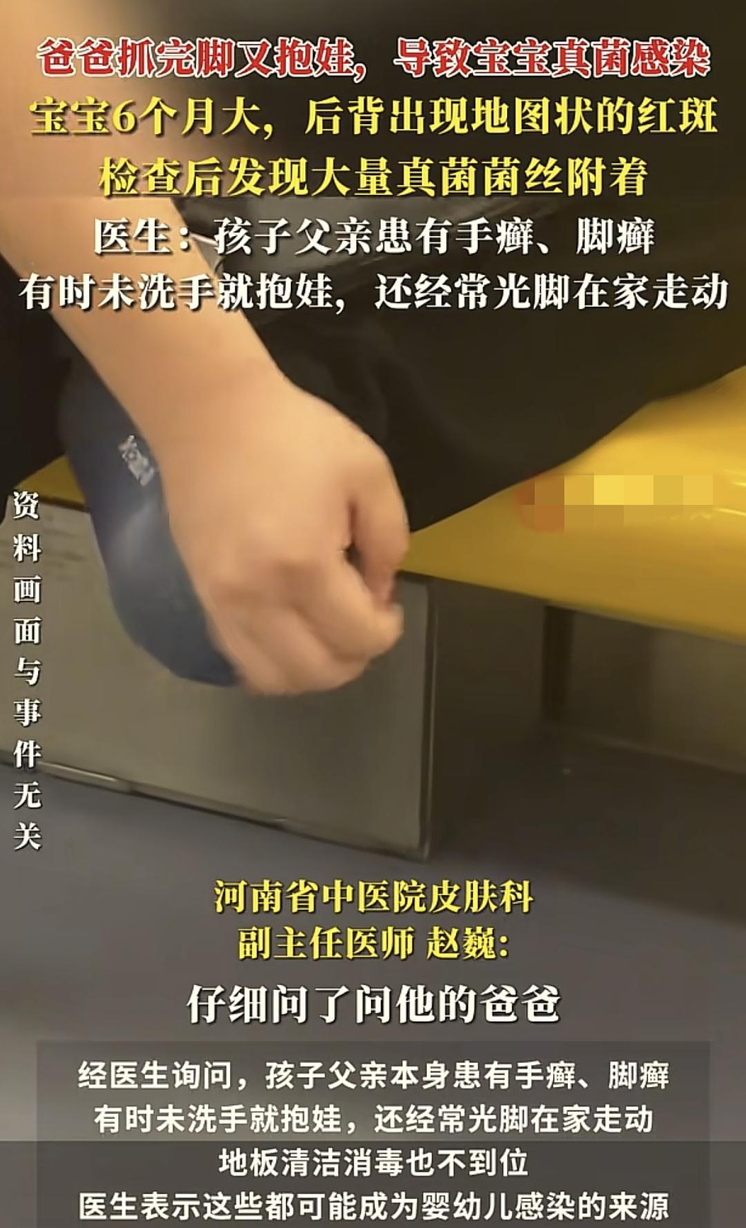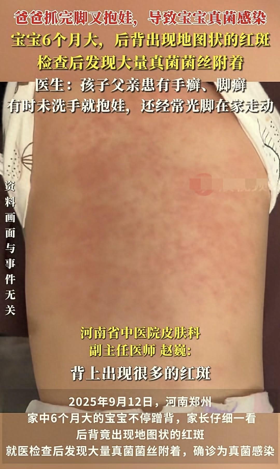 6個月孩子不停蹭背,掀開衣服發現“地圖”,醫生:爸爸光腳導致