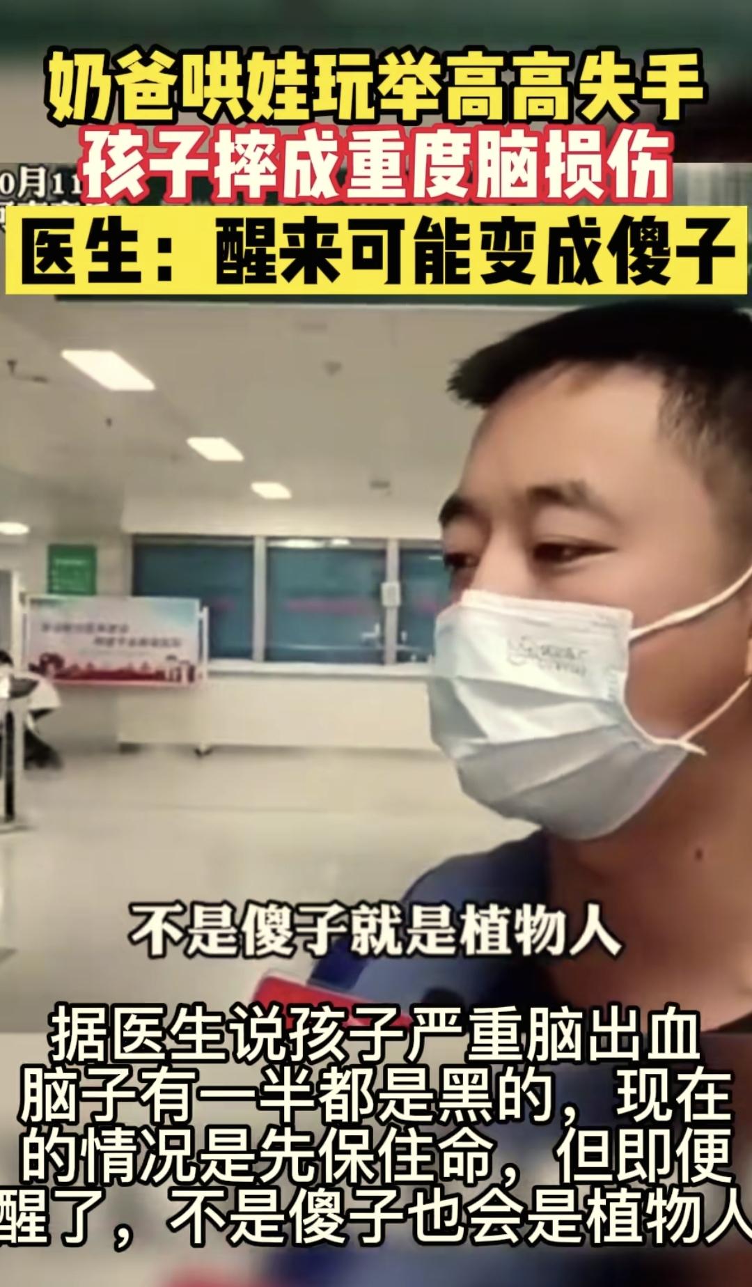 之前河南有一個爸爸就是抱着自己的兒子拋高高,結果爸爸失手了,兒子摔成了植物人,夫妻倆送孩子到醫院,醫生說救過來的可能性不大,即使救過來孩子也有可能變傻,夫妻倆痛哭流涕卻也於事無補了。