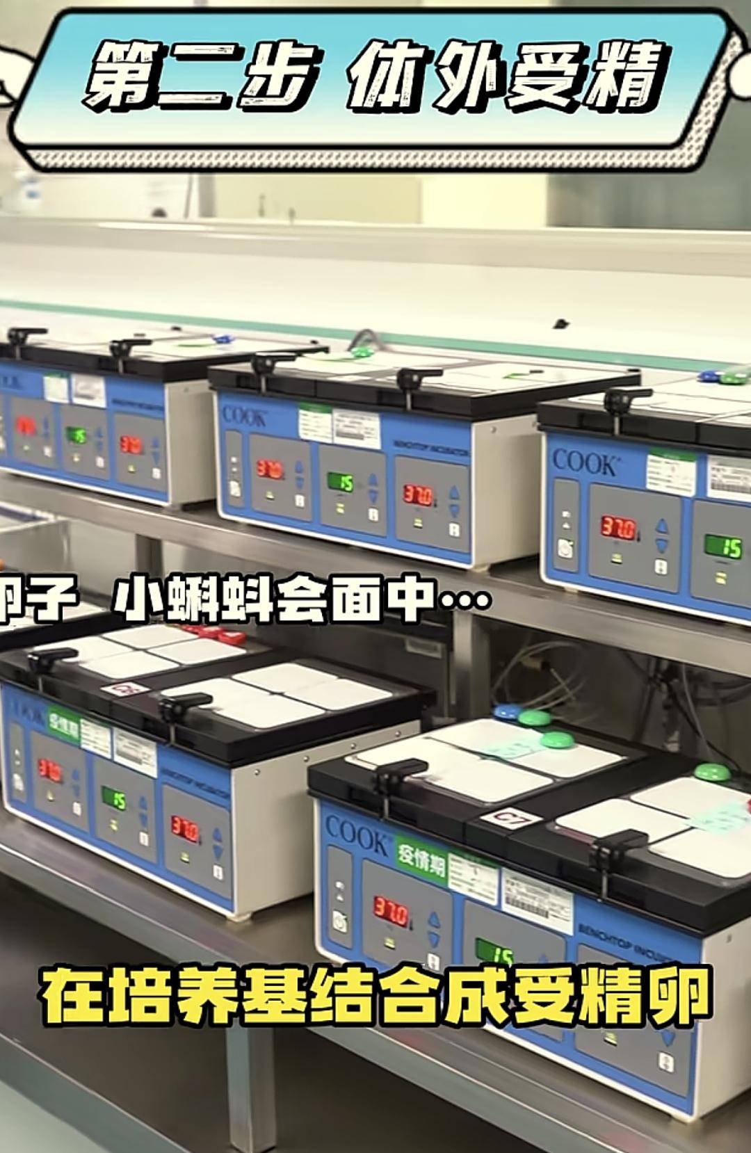 然後選好了健康的卵子之後,就要跟精子一起放到培養基中組合成受精卵,培養基其實並不是像我們想象的那樣簡單放在室外,它是有專門的一個儀器的,溫度溼度適宜,以便精子和卵子能夠更好地分裂,這個是第一代的試管嬰兒。