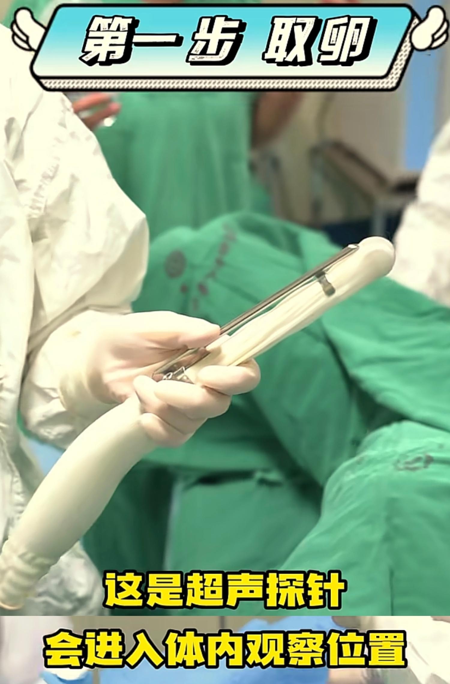 取卵的時候,生殖科醫生展示了取卵的工具,有從陰道進去的超聲波探針,同時還有30多釐米又細又長的取卵器會在超聲波的指引下進入到卵巢裏面取卵子。