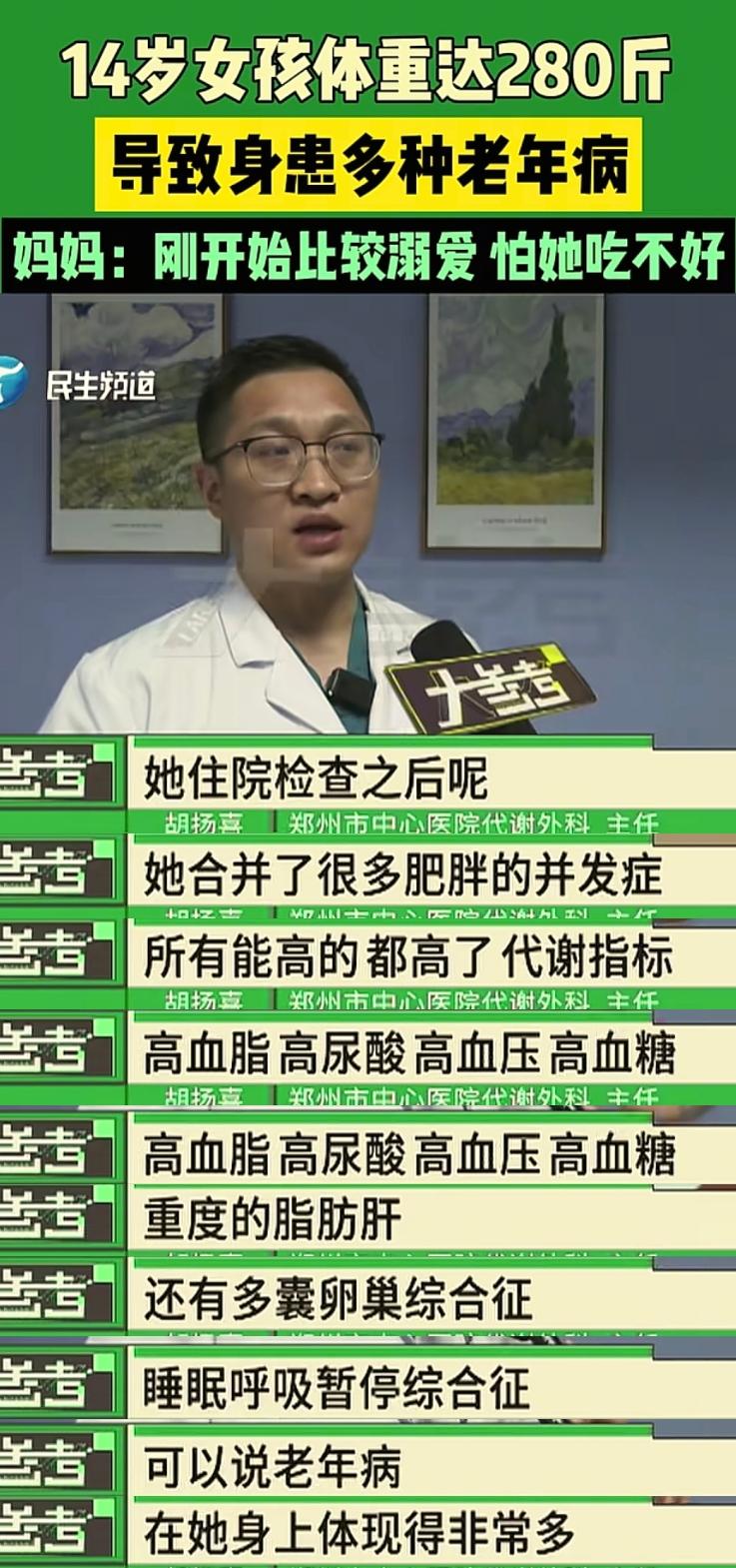 媽媽一個錯誤觀念導致14歲女兒280斤,醫生:老年病,不孕症