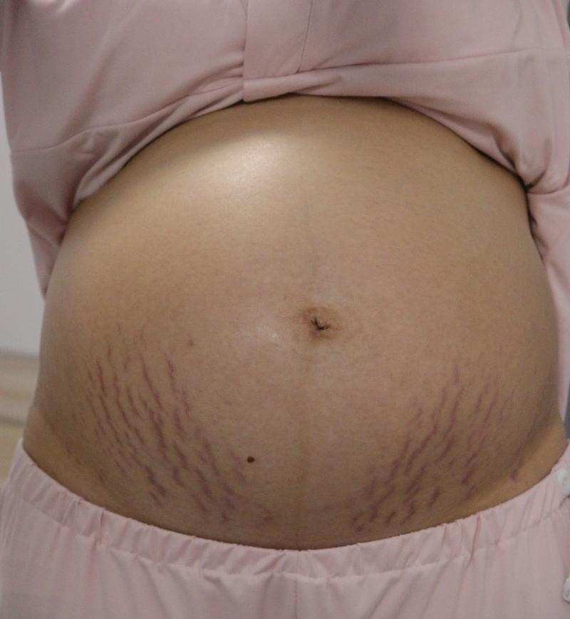 比如說容易長妊娠紋,腹中線變黑等等,這就是皮膚的變化。