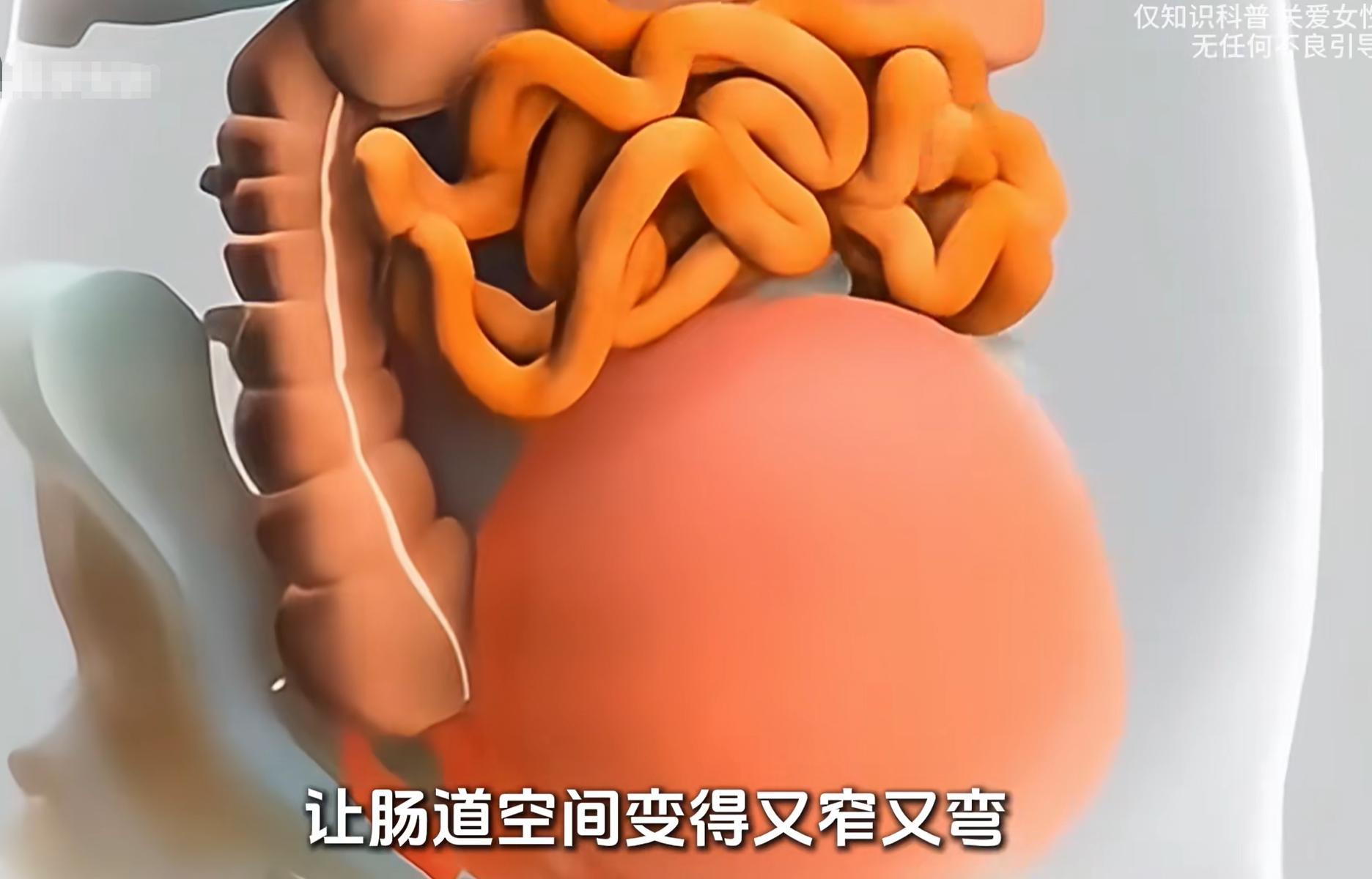 子宮跟腸道其實就是鄰居,本來大家相安無事,但是懷孕之後子宮變得越來越大,不停地擠壓腸道,導致腸道的空間變得又窄又彎。