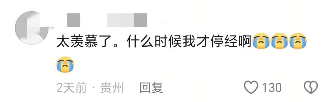 一個貴州的網友說:太羨慕了,我什麼時候才停經啊?