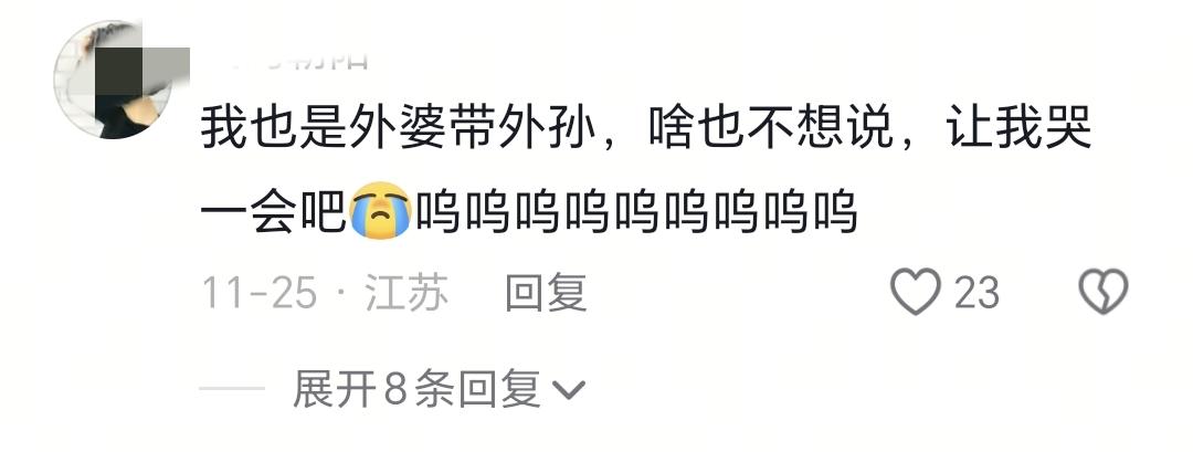 還有一個江蘇的外婆就說:外婆帶外孫,啥也不說,哭一會兒。