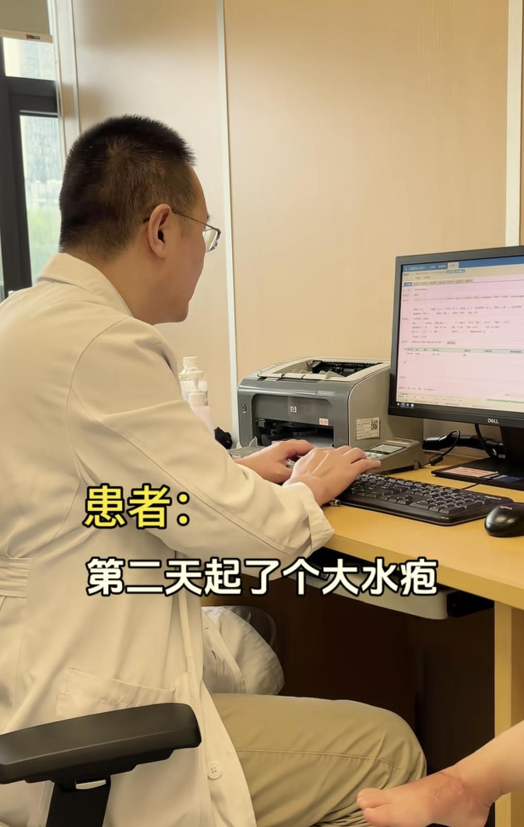 然而,第二天早上,她驚恐地發現孩子腳上起了一個大水泡!她看過資料,知道淺一度燙傷不起水泡,起水泡意味着是二度燙傷。孩子碰着水泡就喊疼,她趕緊帶孩子去了醫院。