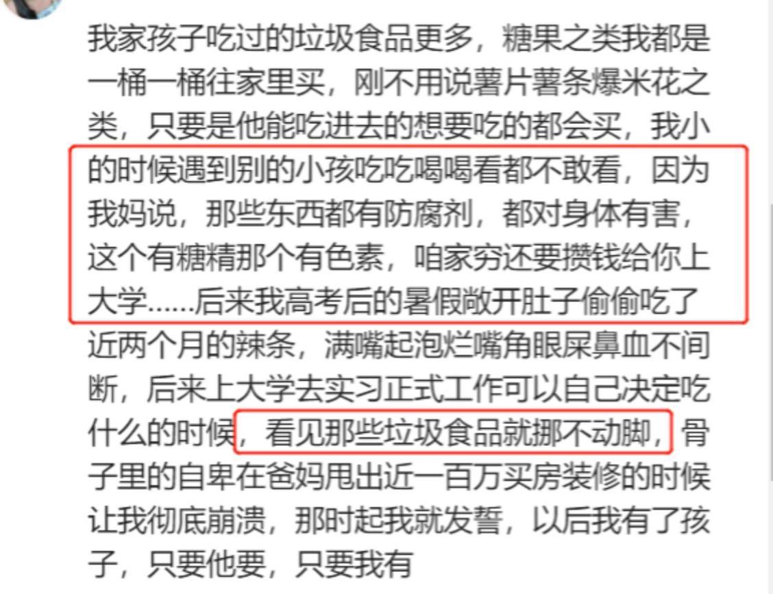 正是因爲小時候沒機會喫,長大後反而瘋狂補償。等到他自己有了孩子,成箱地往家裏買零食,可孩子反而不愛喫了。