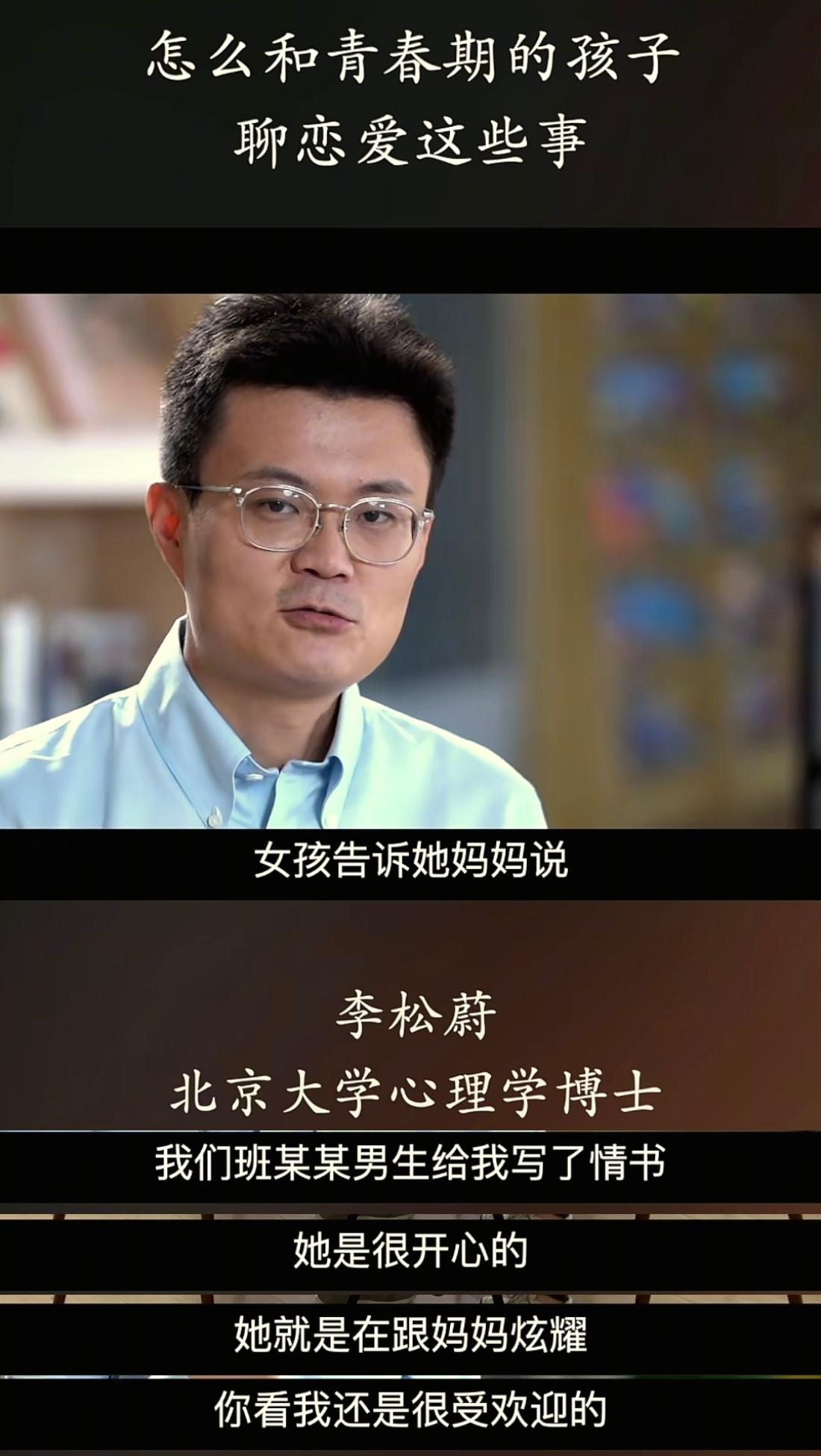 媽媽原本想提醒女兒,高二學習關鍵,不能分心早戀。但她忽然想起北大心理學博士李松蔚在一次訪談中談到的觀點:孩子收到情書時,內心其實是開心、雀躍的,因爲這代表着被認可、被喜歡。