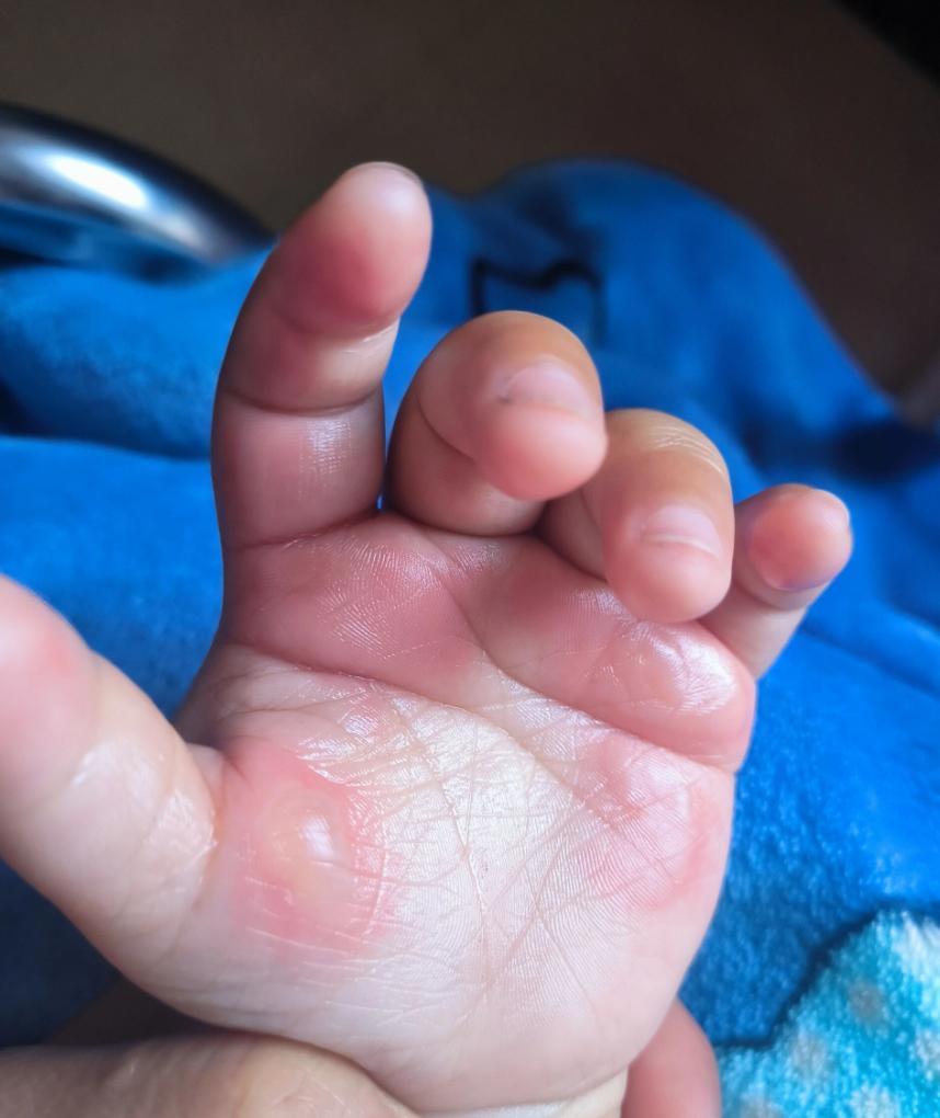 衝完後,被燙處看起來確實沒那麼紅了。沒想到,彤彤午睡醒來,燙傷部位的皮膚變得皺巴巴,還冒起了水泡。媽媽急忙帶孩子去醫院。