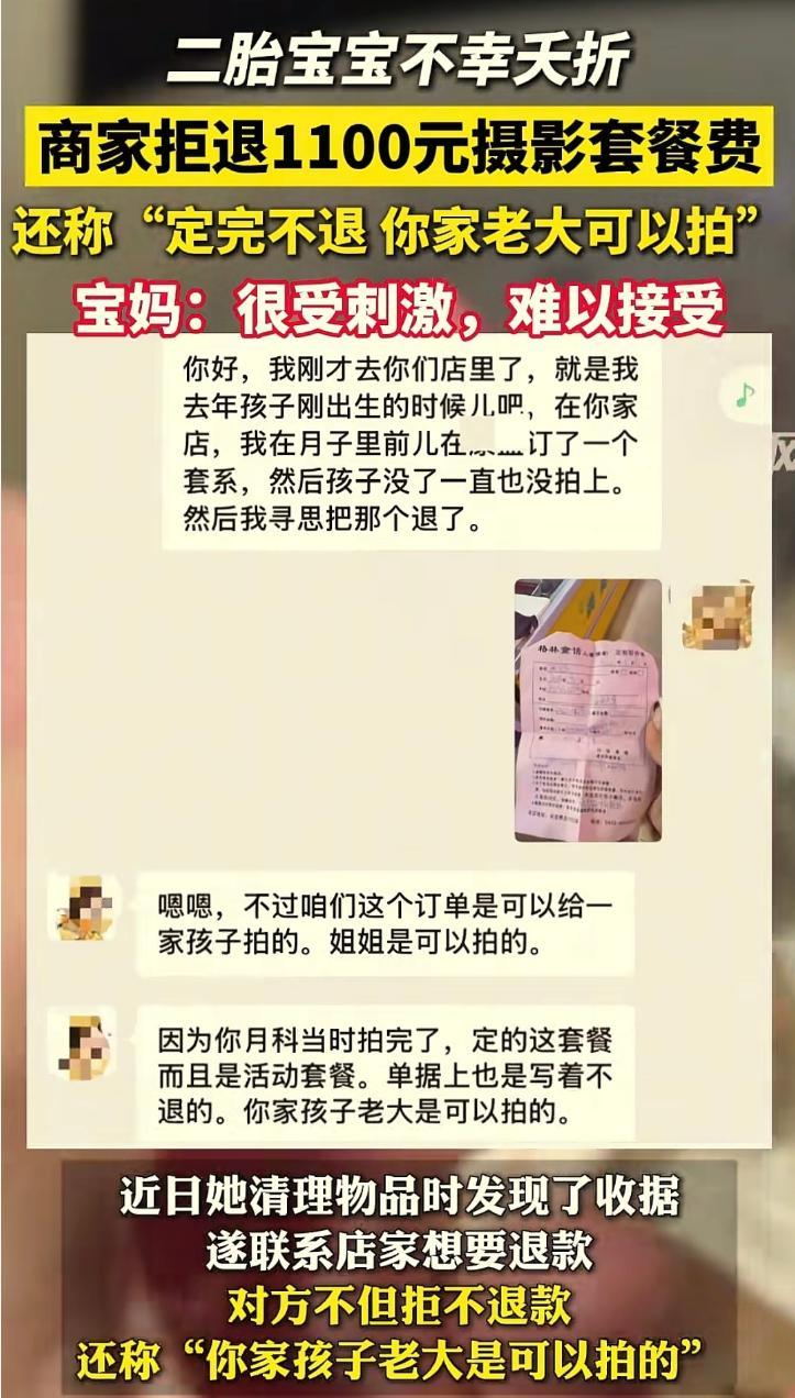 二胎不幸夭折後退拍照套餐無果,商家:姐姐可以拍!寶媽破防