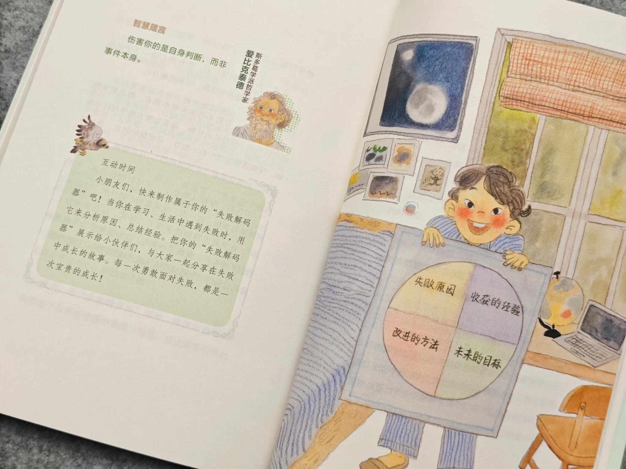 通過學習“控制圈遊戲”“消極想象實驗室”“情緒溫度計”“美德徽章”四大斯多葛智慧工具,幫助孩子看問題,強大內心,穩定情緒,分清輕重。