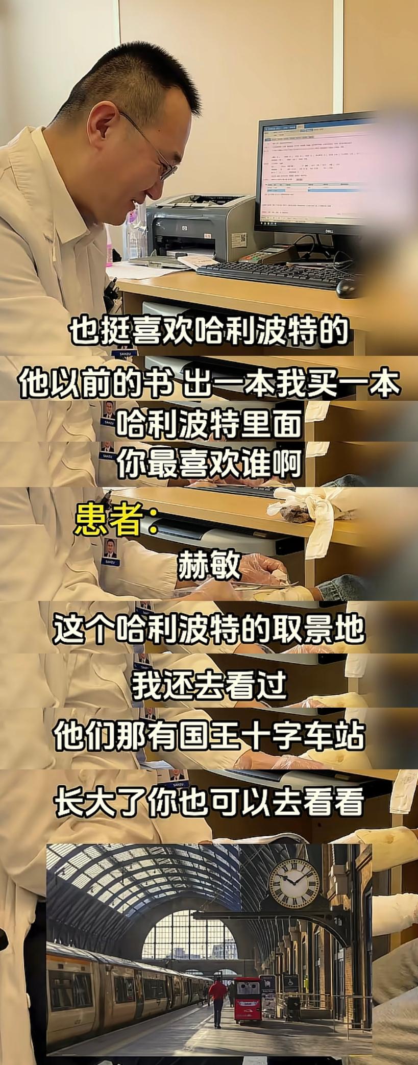 他還和孩子聊起了共同的愛好——哈利·波特,問孩子最喜歡哪個角色,並分享自己也是“哈迷”,收藏了全套書籍,甚至曾去電影取景地“國王十字車站”打卡。