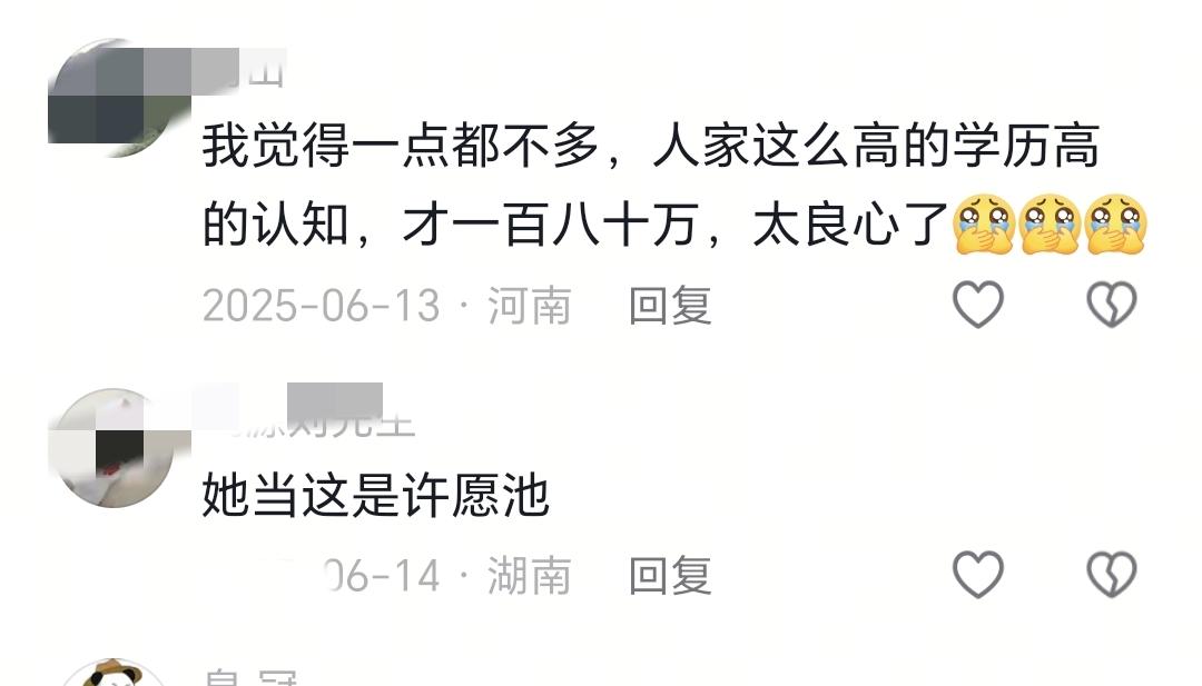 視頻片段流出後,迅速引發網友熱議。有網友說:這是在許願池許願吧!也有人直言:若她20歲提此要求,或可稱一句“年少天真”;但55歲仍懷抱此類幻想,不免有些脫離實際。