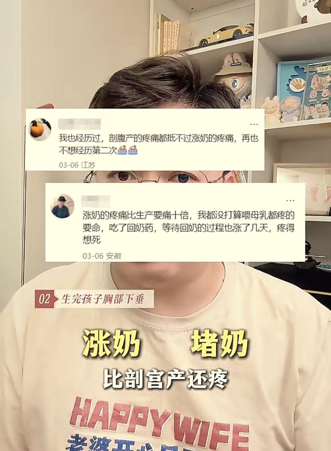 同時,寶寶吸吮時會拉扯乳房,媽媽也可能經歷乳腺炎、漲奶等痛苦,有的媽媽形容“脹得像石頭”“疼得像墜了鉛球”,甚至還有媽媽們說“剖腹產的疼痛都抵不過脹奶的疼痛,不想再經歷第2次。”