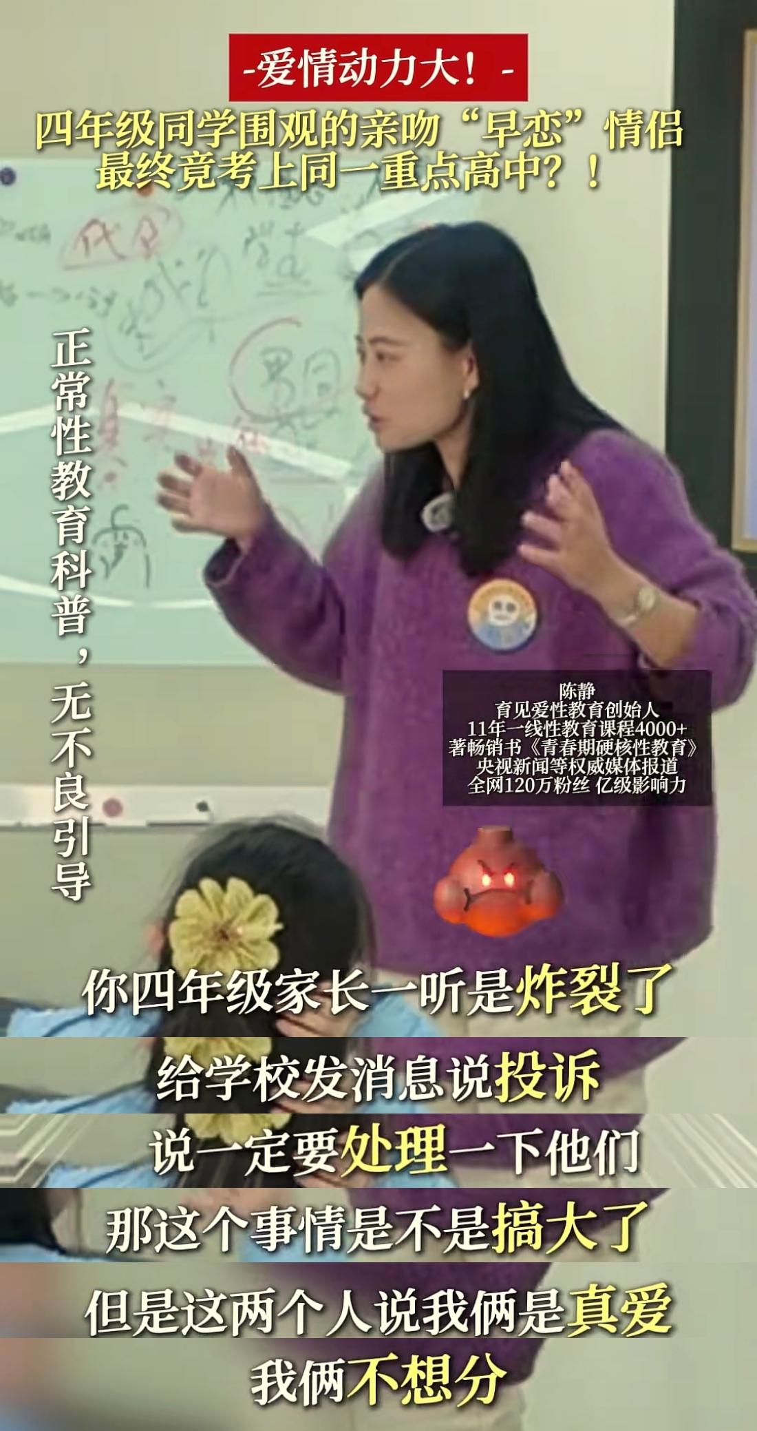 這些四年級的孩子多少已經懂事,回家後紛紛告訴家長:“今天在學校,有初中生在窗戶外面親嘴。”這下可捅了馬蜂窩——家長們集體向學校投訴,要求嚴肅處理。