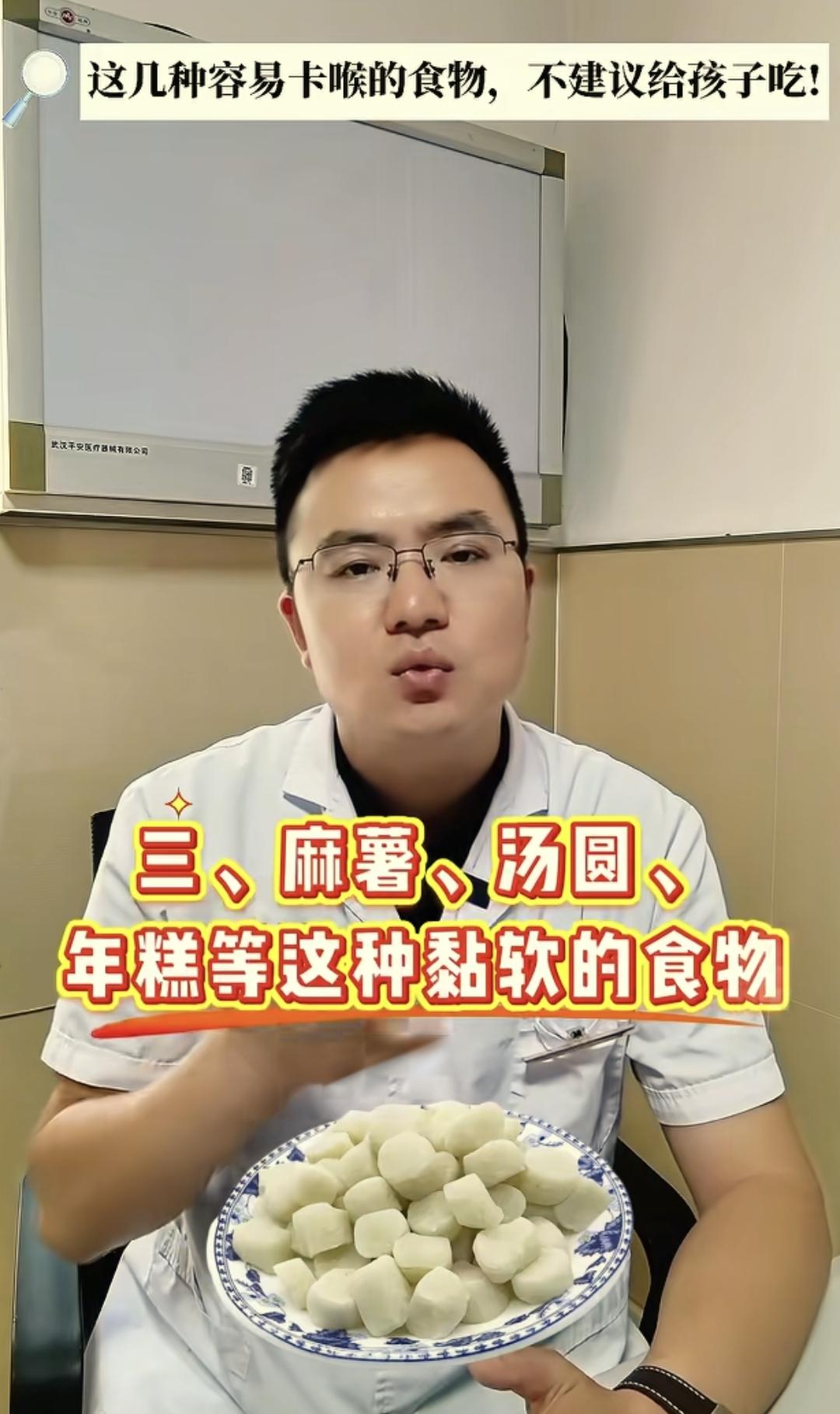 常見食物:湯圓、年糕、麻薯、糯米糰、驢打滾、以及蒸煮得過於軟爛的芋頭、紅薯等。孩子在吞嚥時若被噎住,處理起來非常困難。