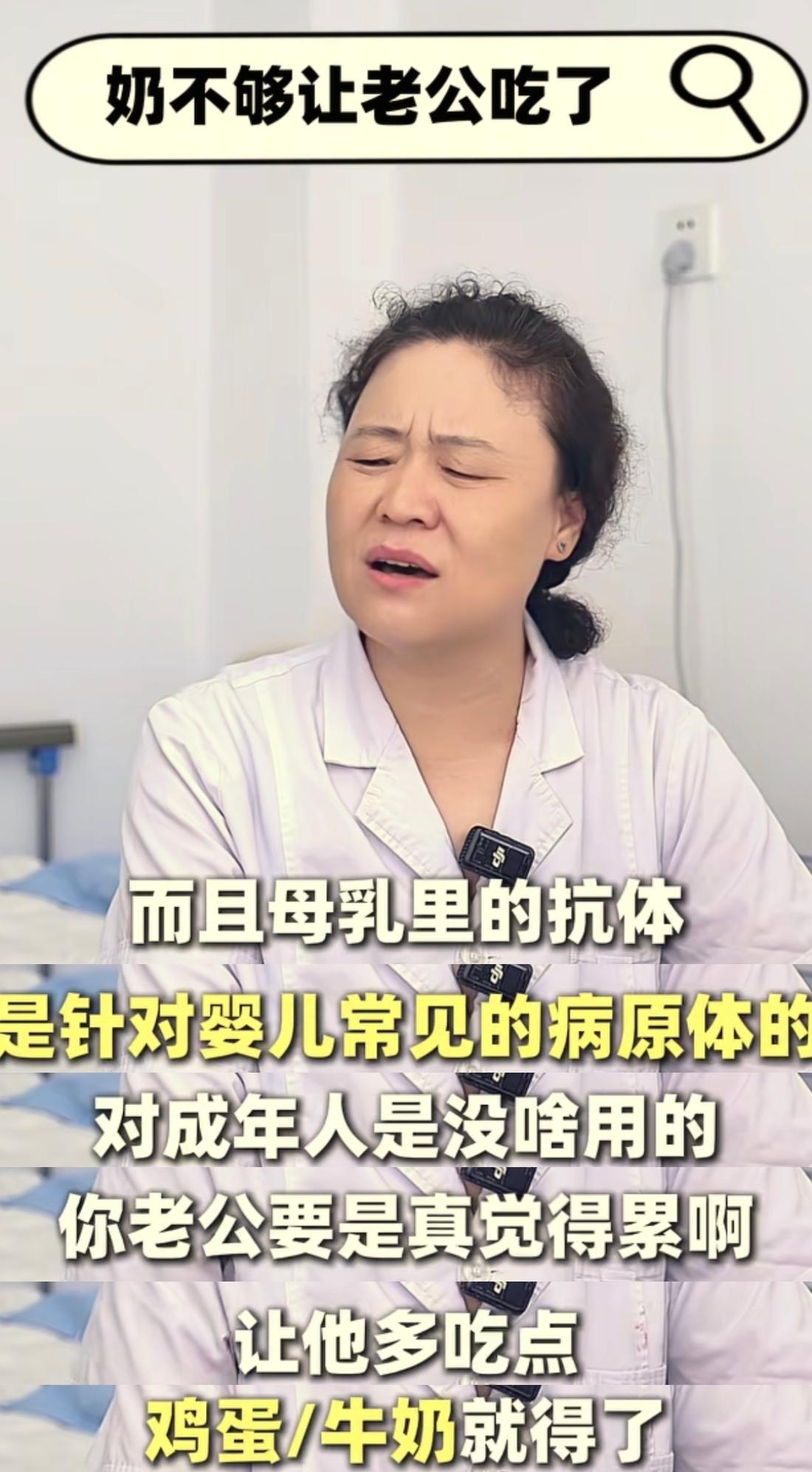 隨着寶寶長大,奶量需求增加,母乳越發不夠分了。有一次帶寶寶去看醫生,她順口問醫生:“母乳不夠老公喝了,怎麼辦?”醫生一聽嚇了一跳:“母乳是給孩子喝的,怎麼老公也喝?大人喝奶水有什麼用?好好喂孩子就行了!”可媽媽卻堅持:“老公每天那麼累,喝點母乳補補不應該嗎?”