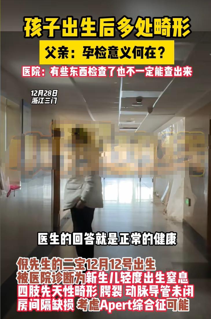 浙江三門也有一位爸爸分享,孩子每次產檢都正常,出生後卻發現患有脣裂(兔脣)和動脈導管未閉等多處畸形。