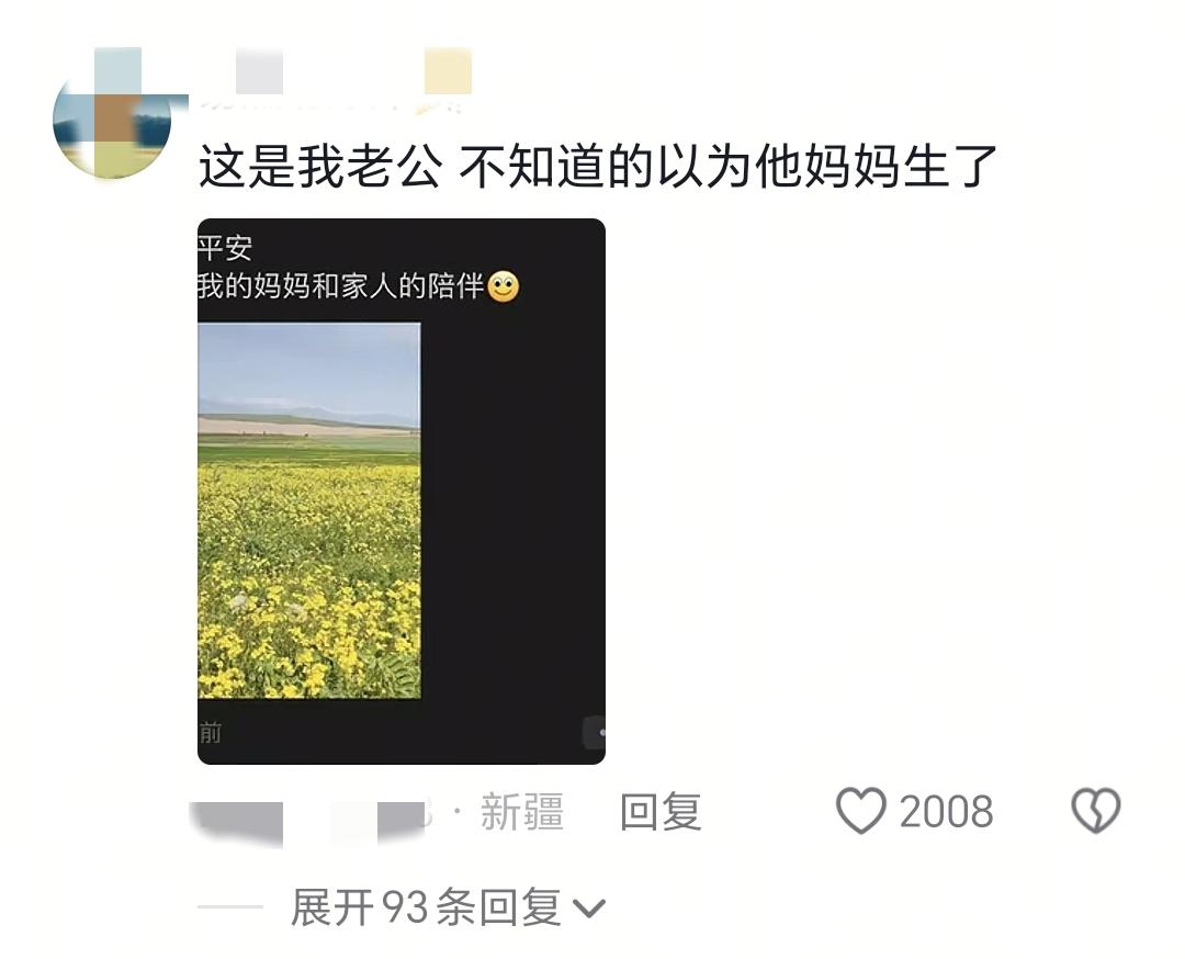 一位新疆網友說,她老公的朋友圈寫的是:“母女平安,辛苦我的媽媽和家人的陪伴。”