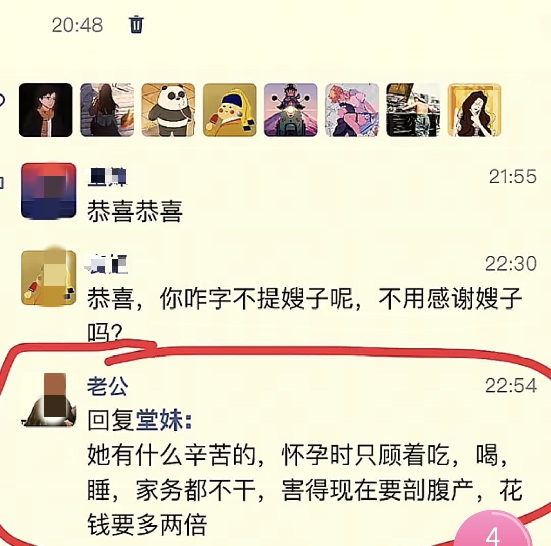 她老公竟回覆:“她有什麼辛苦的,懷孕時只顧着喫、喝、睡,家務也不幹,害得現在要剖腹產,花的錢是順產的兩倍。”