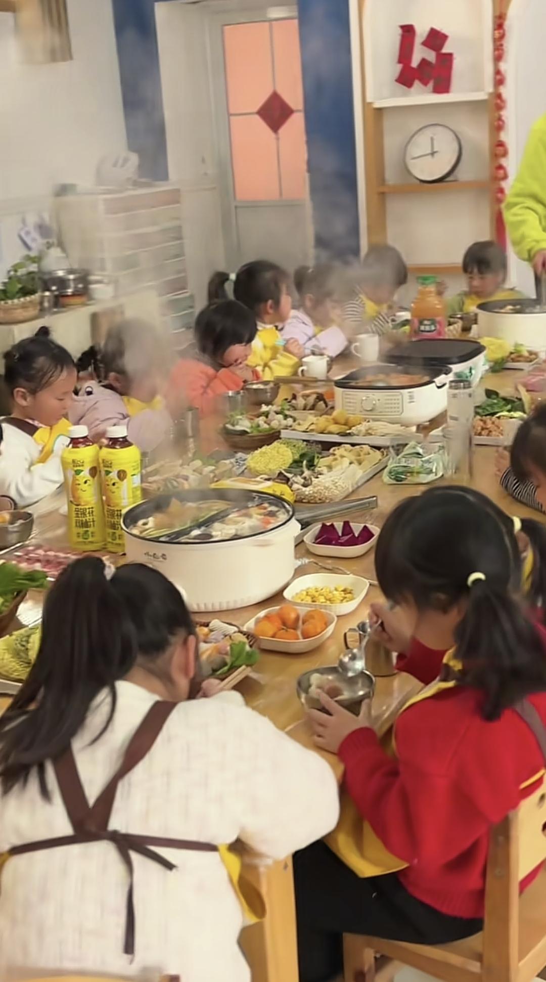 而在幼兒園裏面不僅僅是日常的一些遊戲,幼兒園還會時不時組織一些活動,有一些是校外的活動,比如春遊,秋遊,還有一些校內的活動,比如說美食會,火鍋節或者是自助餐,或者是水果拼盤。