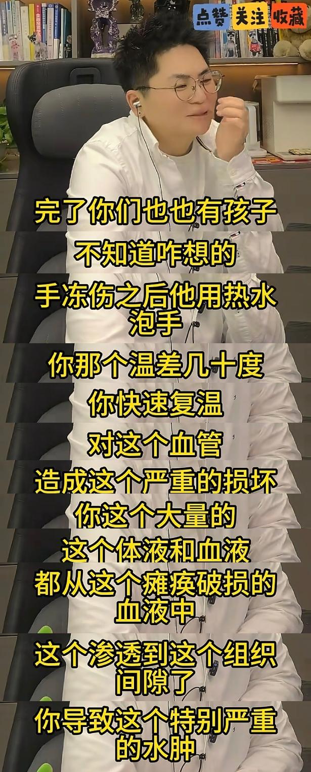 醫生解釋,極速的溫差會導致血管嚴重損傷,組織液滲出,引發嚴重水腫甚至壞疽,最壞的情況可能面臨截肢。