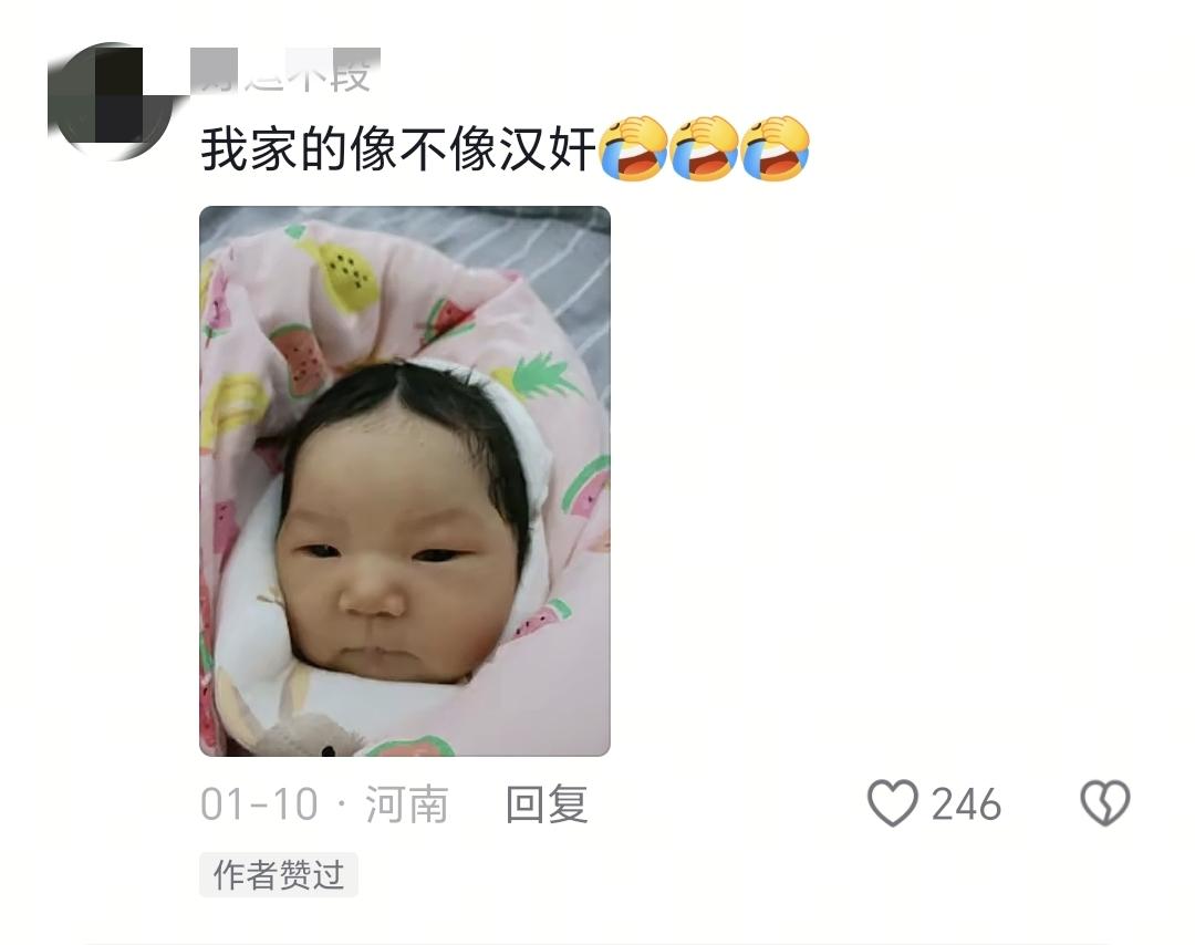 有一個河南的網友說自己的孩子像漢奸。