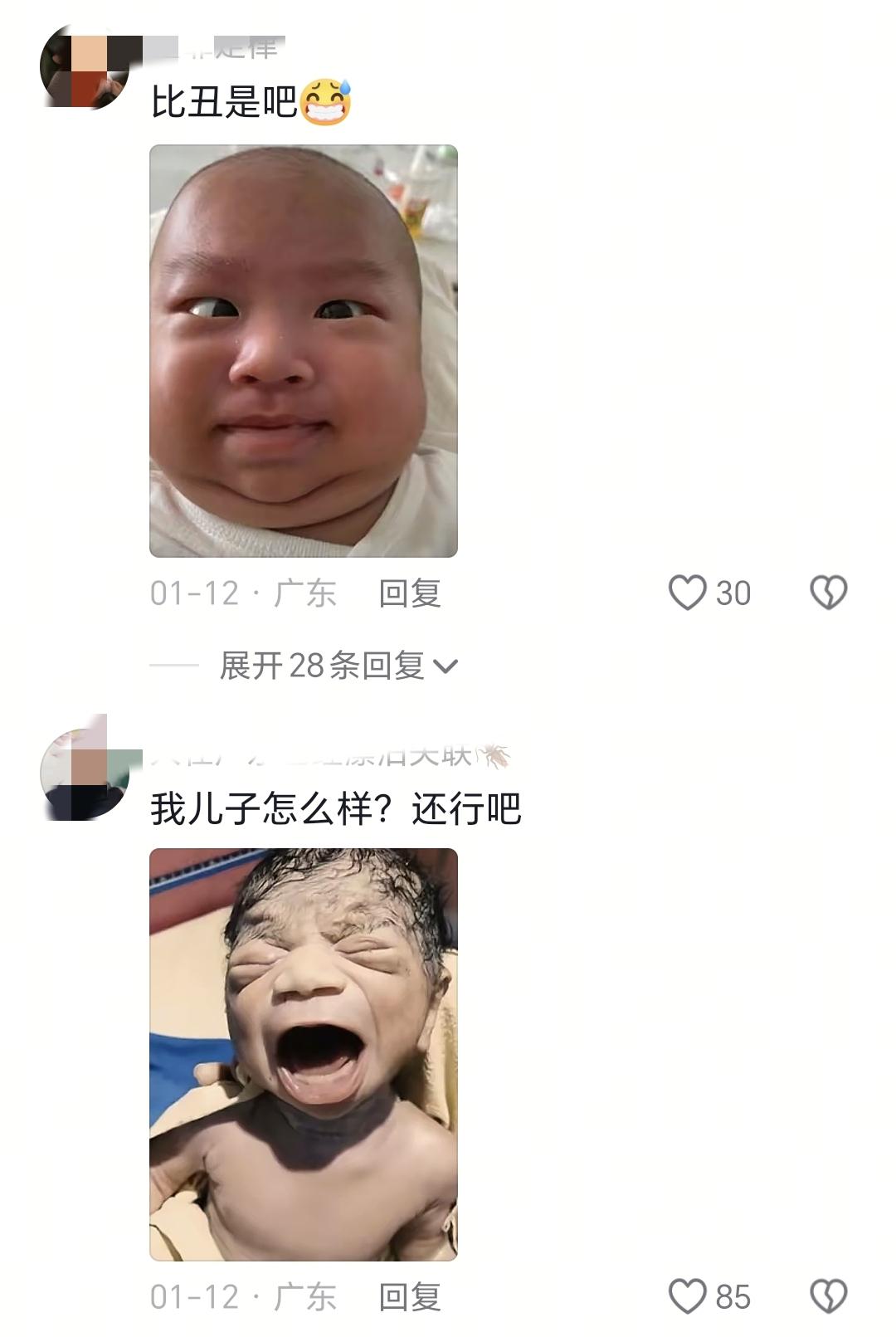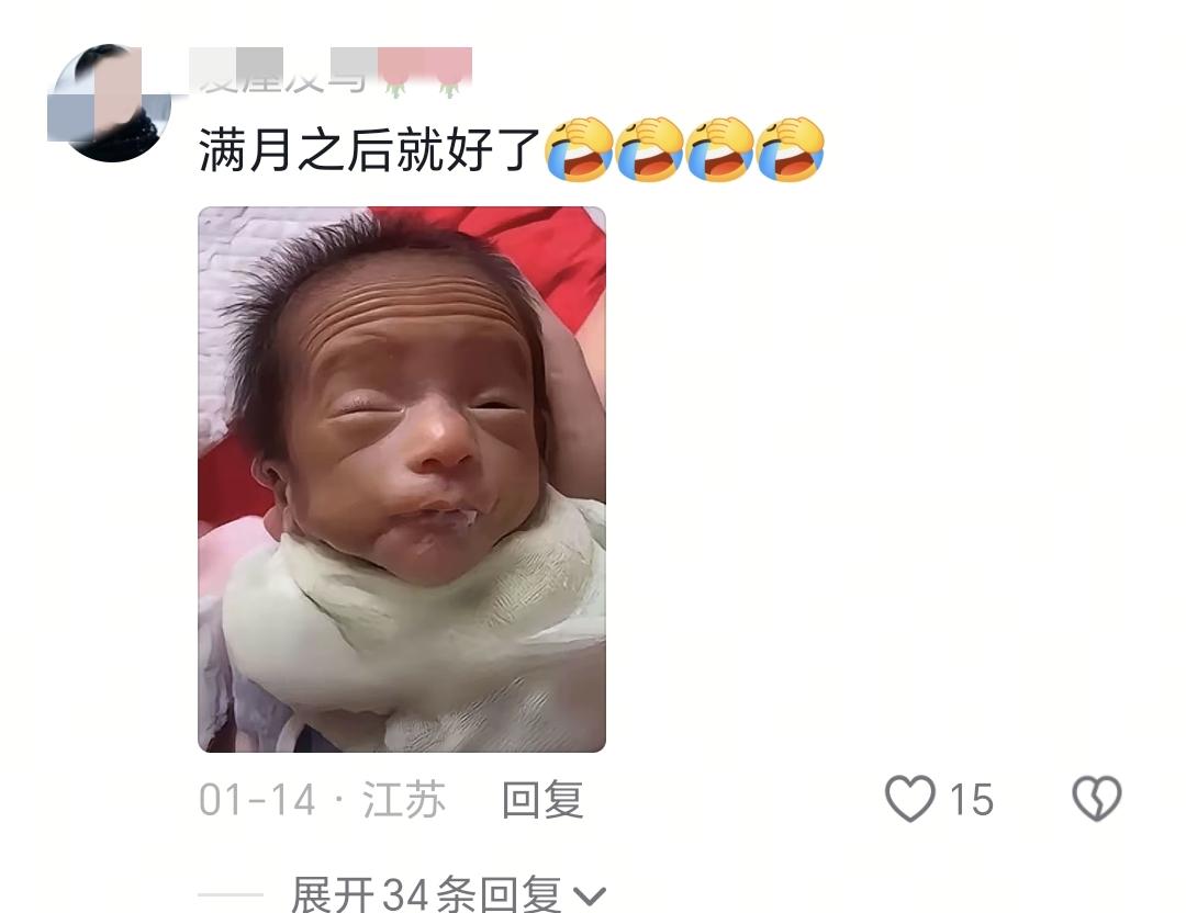 萬萬沒有想到評論區的網友給她的安慰方式這麼獨特,整個評論區網友把自己孩子剛出生時候的照片發上來的時候,妥妥一個驚悚片。幾乎每個孩子出生的時候樣子都讓媽媽覺得不堪入目。
