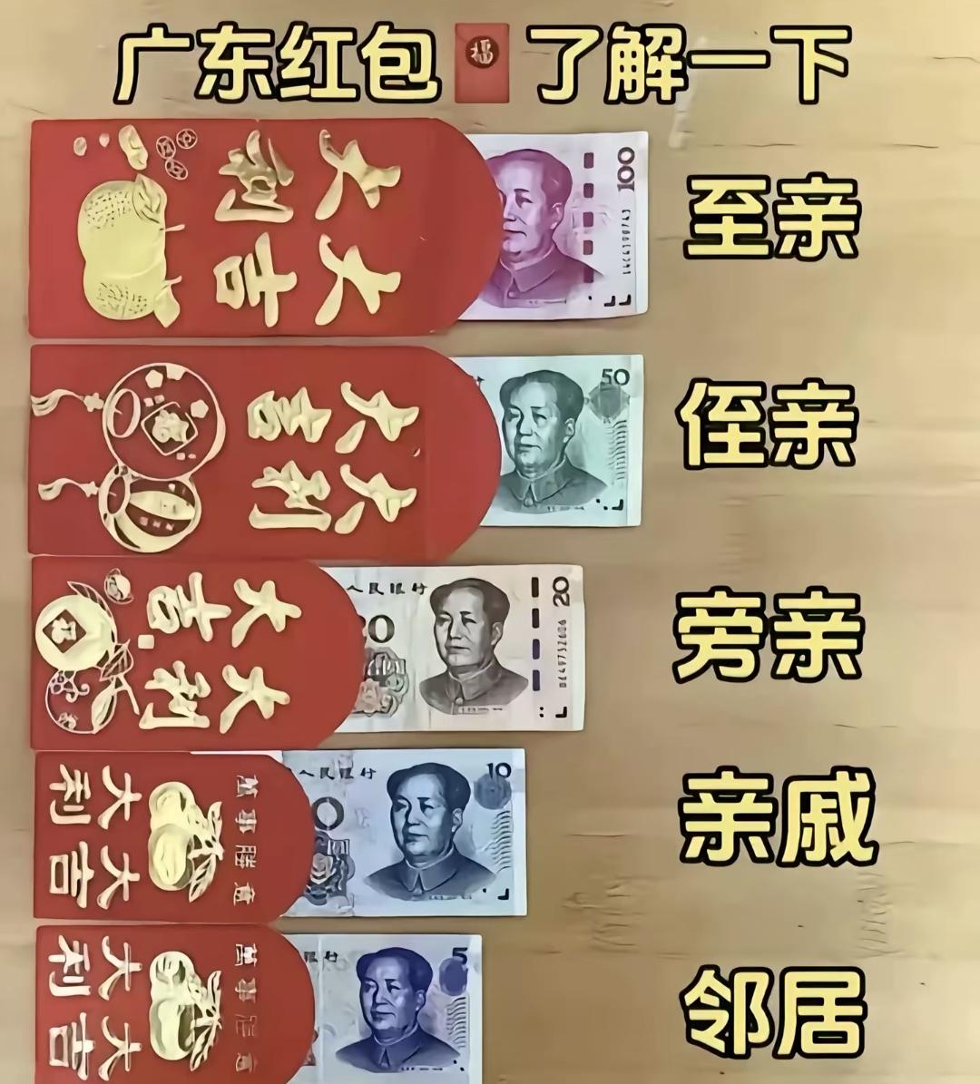 網上流傳的一張“廣東利是金額圖”,清晰展示了其接地氣的五個層級: