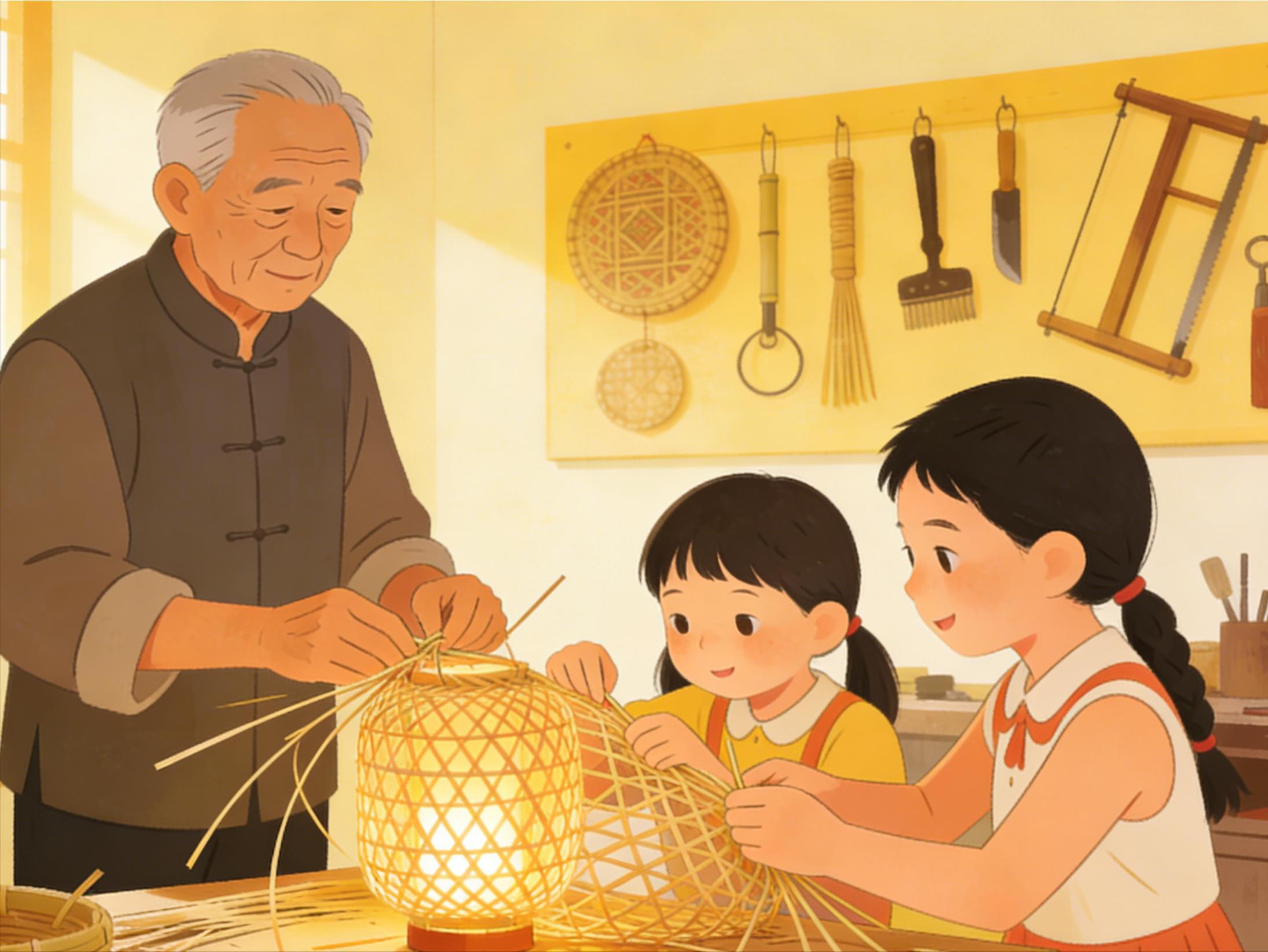 今年我決定約了一家非遺工坊的親子體驗課,帶兒子去扎一盞竹編燈。