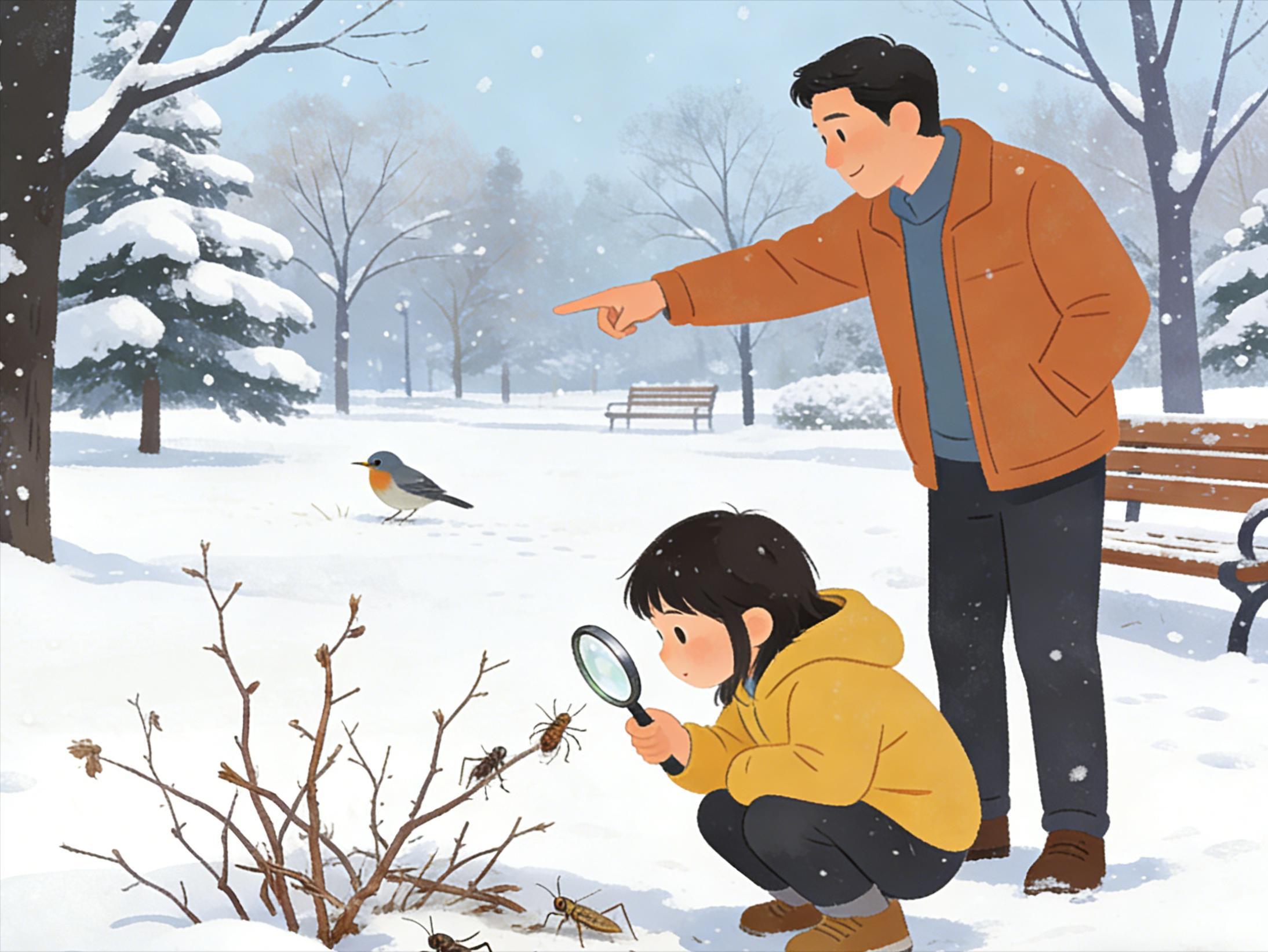 - 尋找冬天裏的生命:扒開落葉找找有沒有蟲子,看看哪些鳥還在勤奮地覓食。聊聊它們怎麼在寒冷中生存。