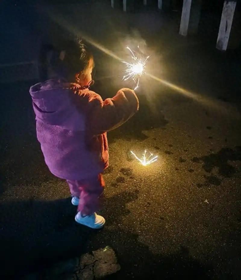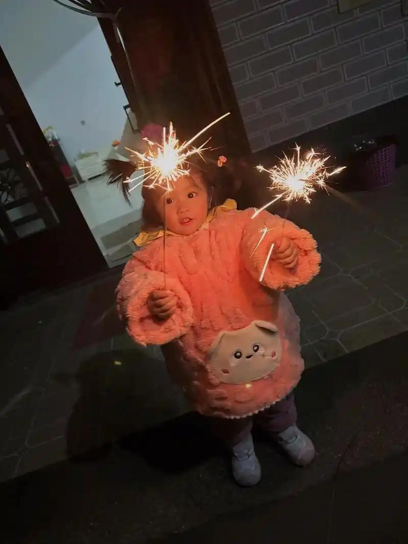 杭州一個三歲的小姑娘,回老家過年,看見鄰居小夥伴人手一根仙女棒,眼睛都亮了。