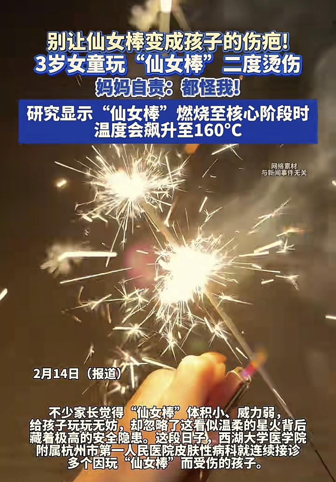 但我們大人得明白一件事:孩子眼裏的光,是開心;仙女棒的光,是高溫。別讓一時的浪漫,變成一世的疤痕。