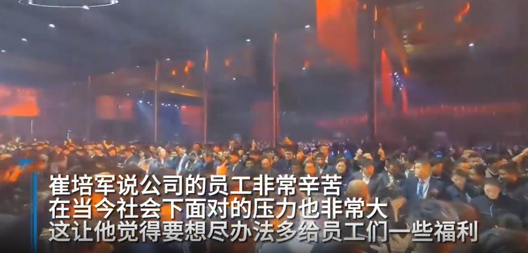 河南礦山起重機有限公司的總經理崔培軍堪稱全網最愛發錢的老闆,每年過年都要火一把,今年他廠子的年會又火了。
