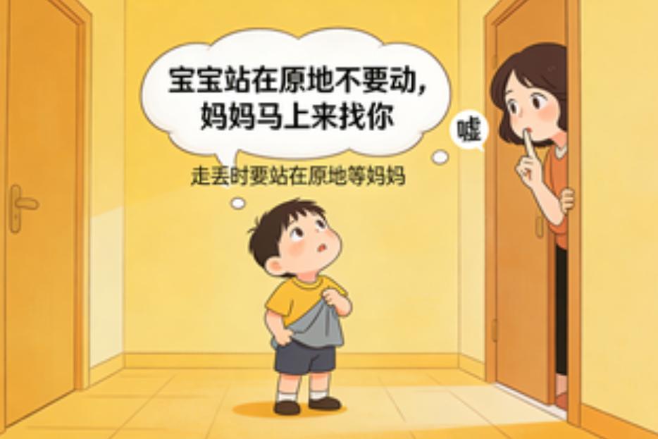 可以在家裏跟孩子玩遊戲,比如媽媽藏在門背後,孩子找不到媽媽時,媽媽就跟他說:“寶寶站在原地不要動,媽媽馬上來找你。”這樣孩子在外面走丟時,也會記得“站在原地等媽媽”。